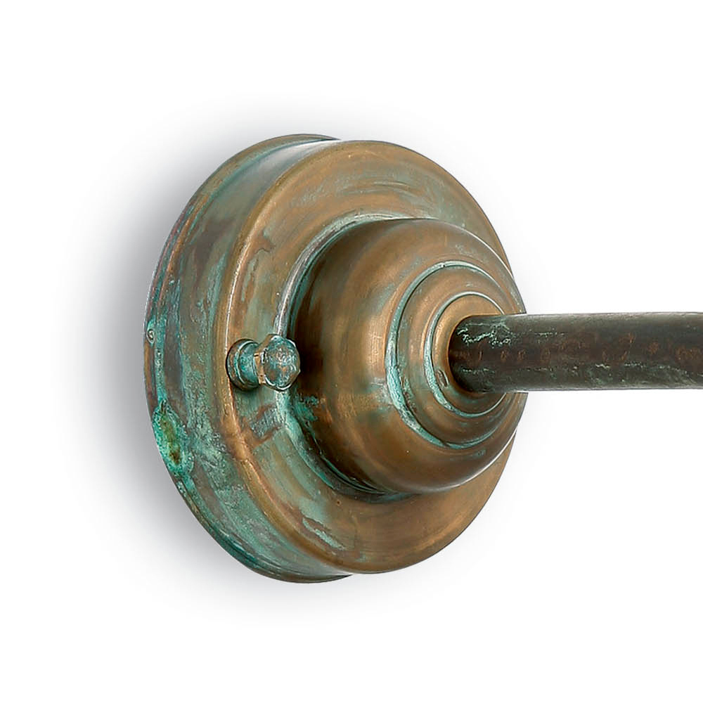 Ky ndriçues muri për ambiente të jashtme shpreh një ekuilibër të përsosur midis traditës artizanale dhe rafinimit të përjetshëm . Struktura prej bronzi , e karakterizuar nga përfundime antike , i jep të gjithës një pamje të ngrohtë dhe materiale, ideale për të përmirësuar hapësirat e jashtme me një shije klasike , rustike ose industriale elegante .
