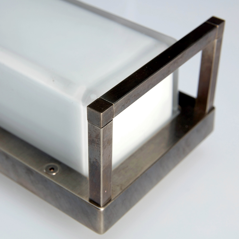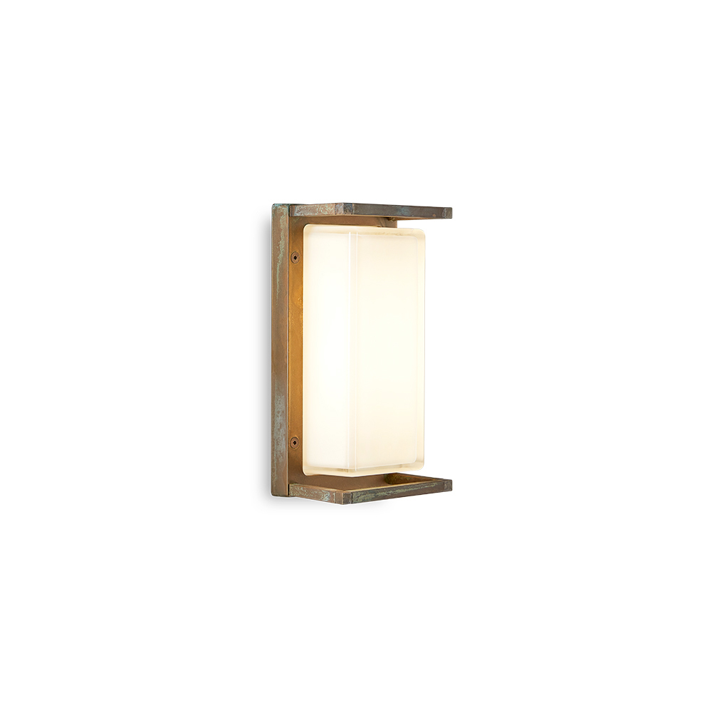 E thjeshtë dhe elegante, kjo dritë muri e punuar me dorë është një zgjidhje e rafinuar ndriçimi, e projektuar për të përmirësuar muret moderne dhe hapësirat bashkëkohore. Struktura prej bronzi e derdhur , e kombinuar me një difuzor drejtkëndor prej qelqi opal , krijon një dritë të butë dhe të njëtrajtshme, ideale për ndriçim mikpritës dhe funksional.