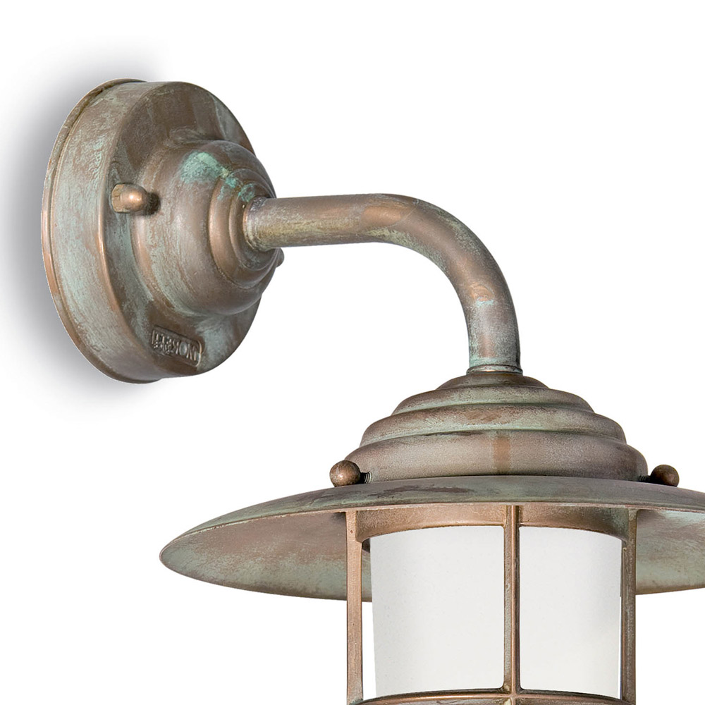 I frymëzuar nga fenerët klasikë të jashtëm , ky ndriçues muri prej bronzi kombinon mjeshtërinë tradicionale dhe elegancën e përjetshme . Struktura prej bronzi , e zbukuruar me përfundime antike , rrit karakterin material të metalit dhe i shton personalitet çdo konteksti arkitektonik.