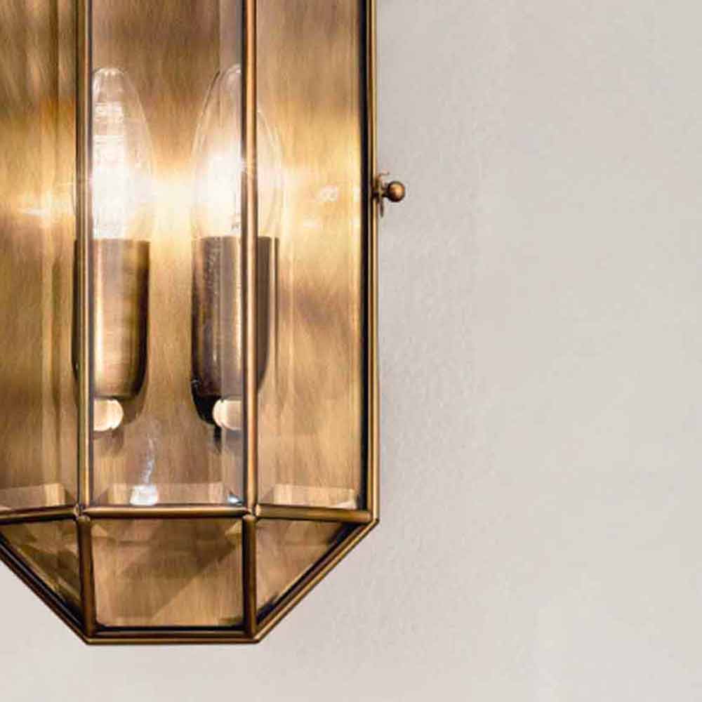 Llambë muri në xham dhe bronz të skuqur në dy madhësi, prodhim artizanal në Itali.