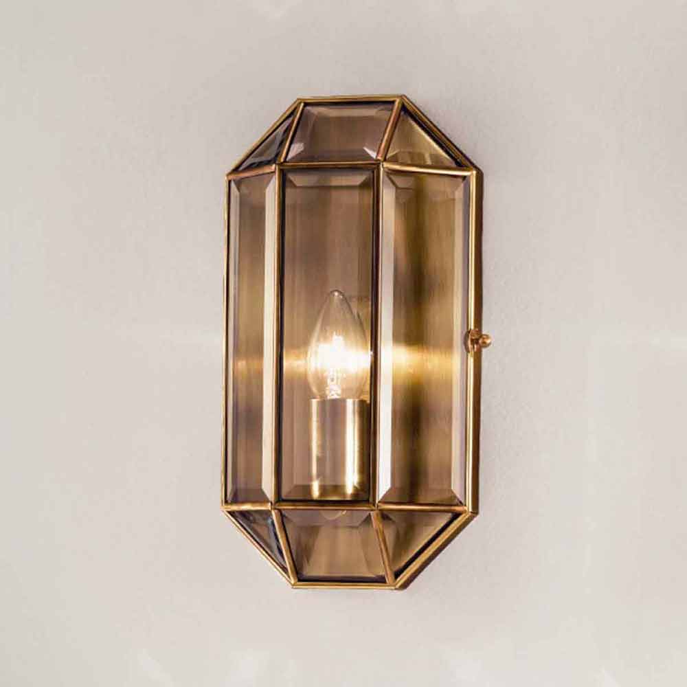 Kjo dritë e brendshme e murit është e frymëzuar nga format më të pastra gjeometrike. Isshtë një model simbolik i traditës artizanale italiane pasi i referohet traditës antike të lidhjes së plumbit, për një artikull me cilësi të lartë dhe kuptimplotë. Një mobilje me një vlerë të madhe emblematike, ideale për tu përshtatur me kontekste moderne por edhe ndërkombëtare. Isshtë një produkt unik dhe ekskluziv , tërësisht i punuar me dorë në Itali në xham të pjerrët dhe strukturë bazë në bronz të djegur.