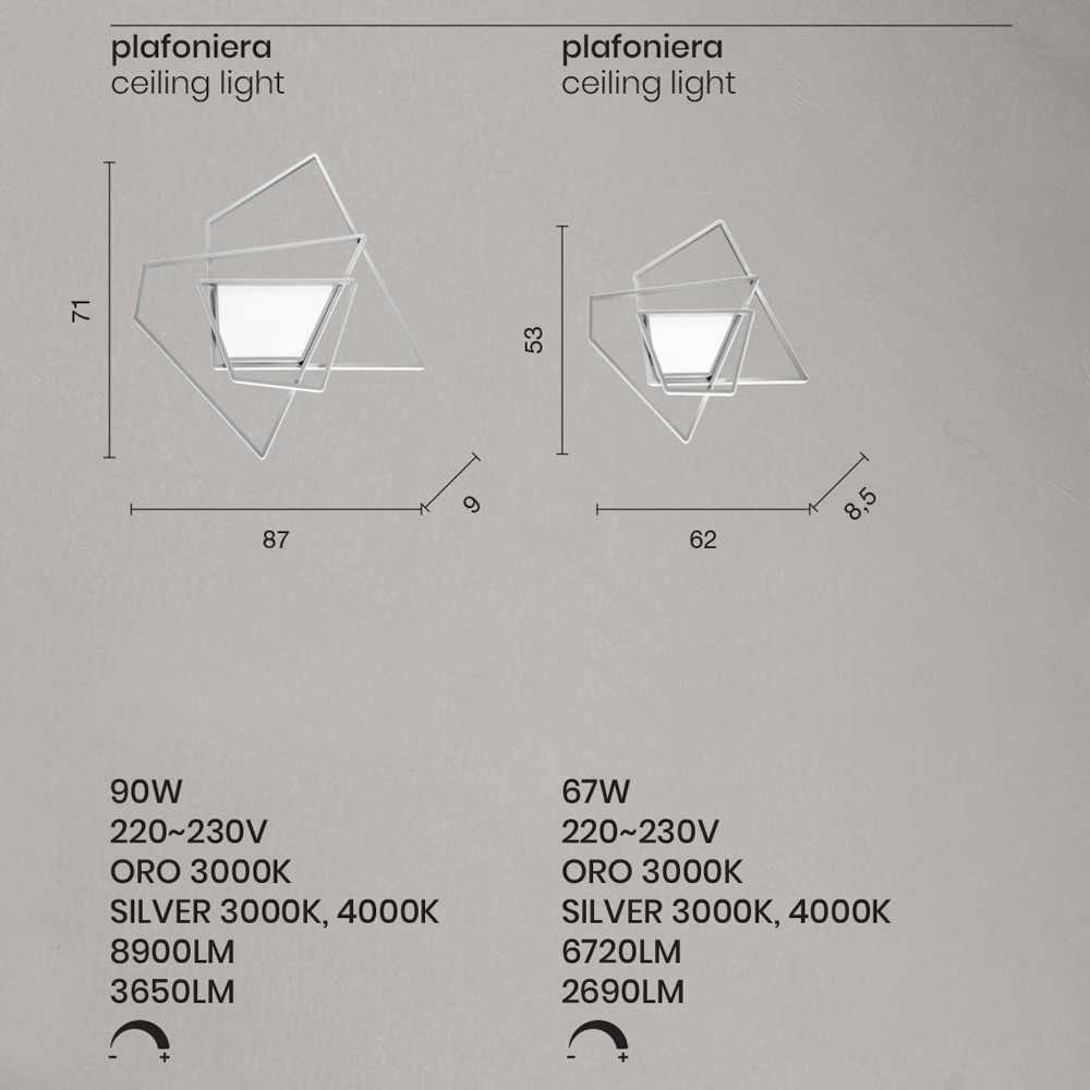 L 87 x P 9 x H 71 cm (LED 90W 220-230V 3000K 8900LM);