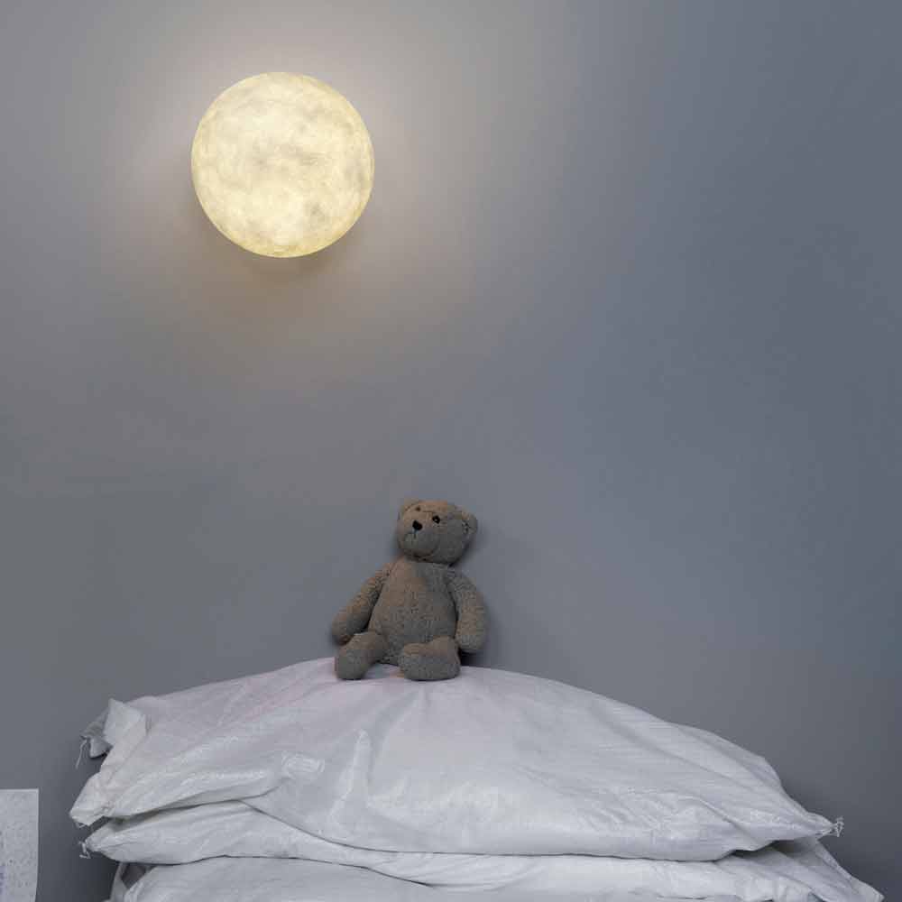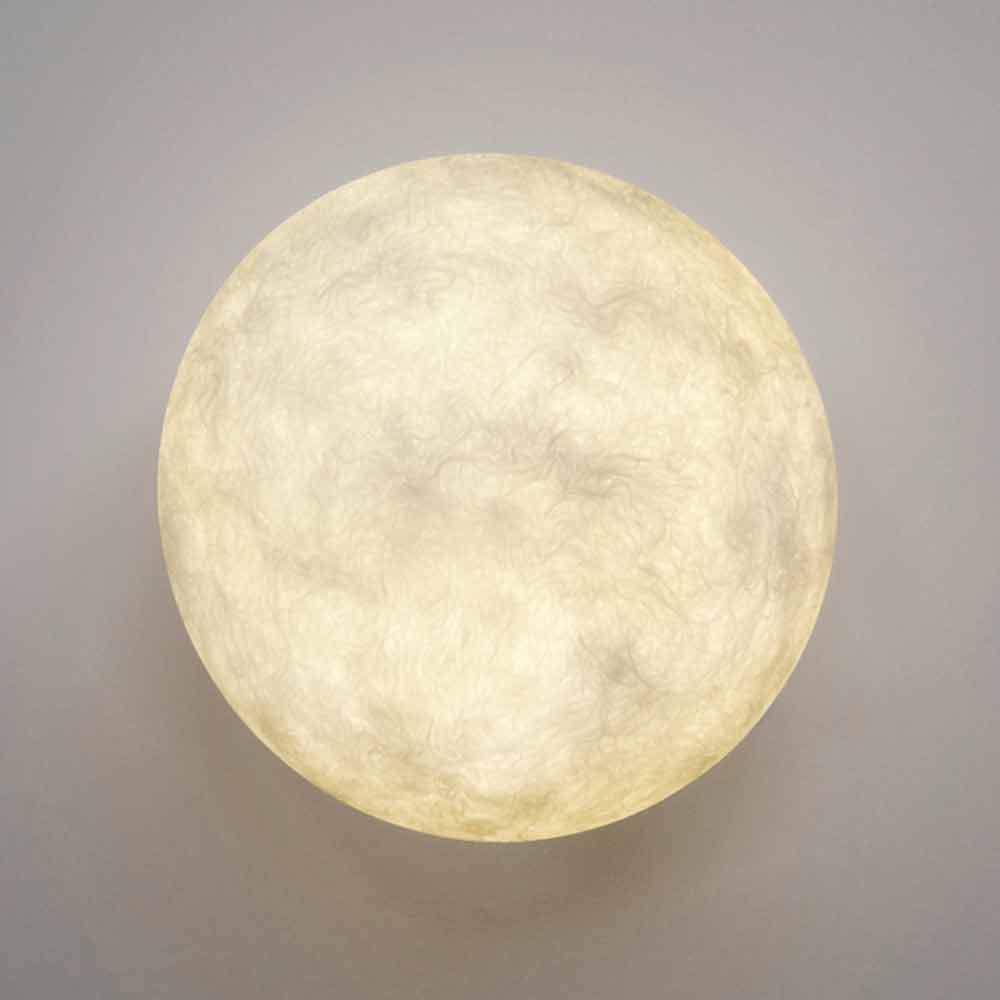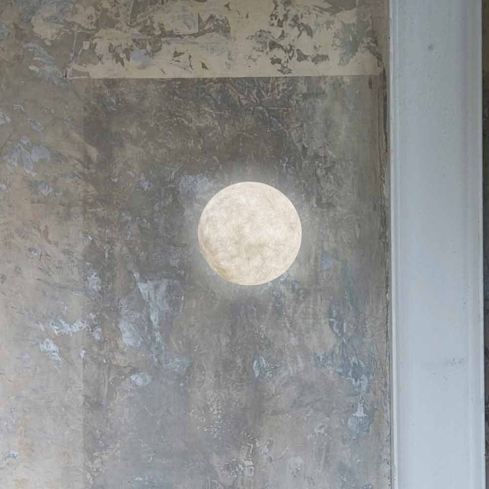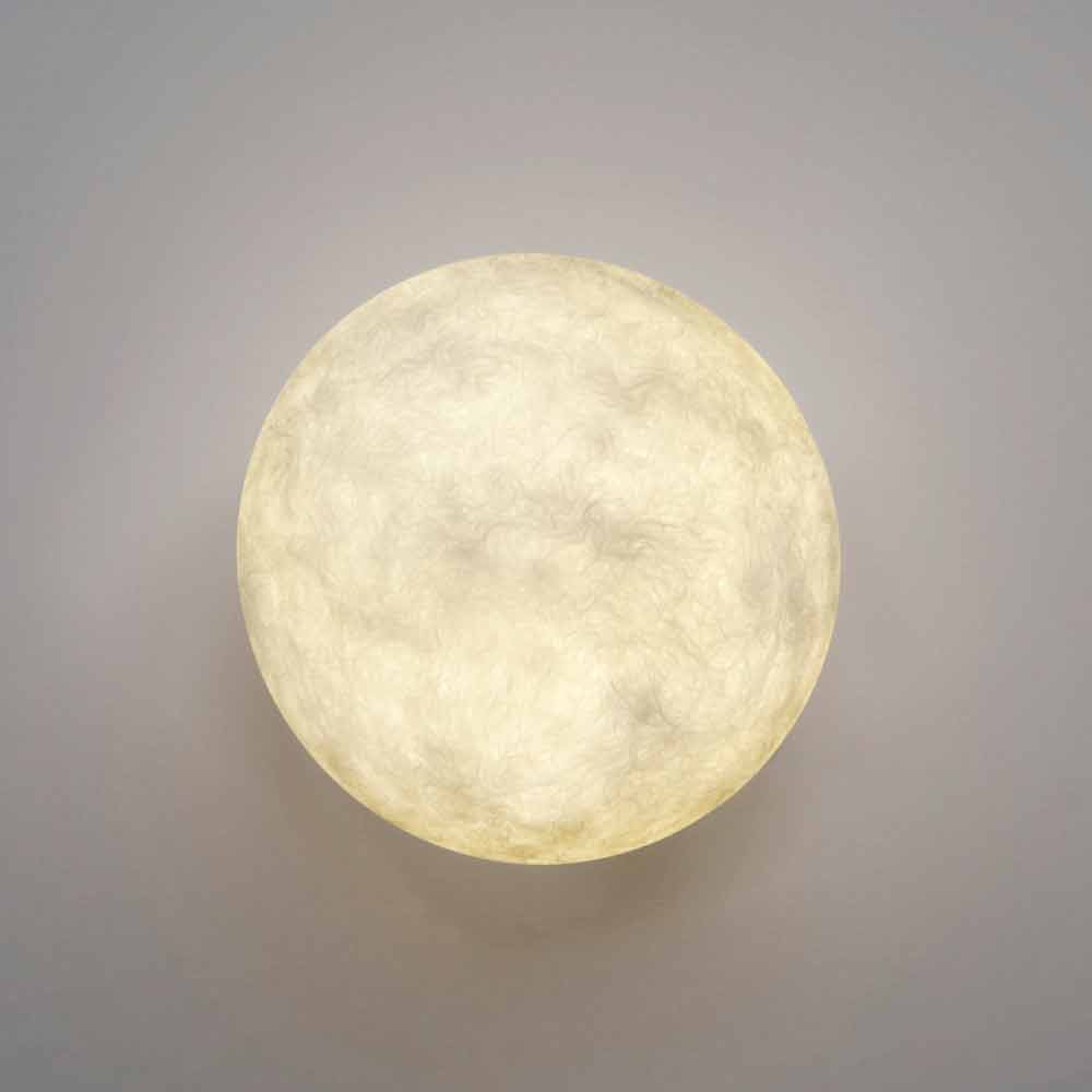 Moderne In-es.artdesign A. Llambë muri me nebulit të Hënës Dizajni dhe forma e llambës së murit A. Monn kujton hënën e vërtetë. Prodhuar nga In-es.artdesign për koleksionin Luna në Nebulite®, një material inovativ i përbërë nga rrëshirë dhe fibra që i jep llambës, falë venave të saj, dhuratën e riprodhimit të një atmosfere magjike hënore.
