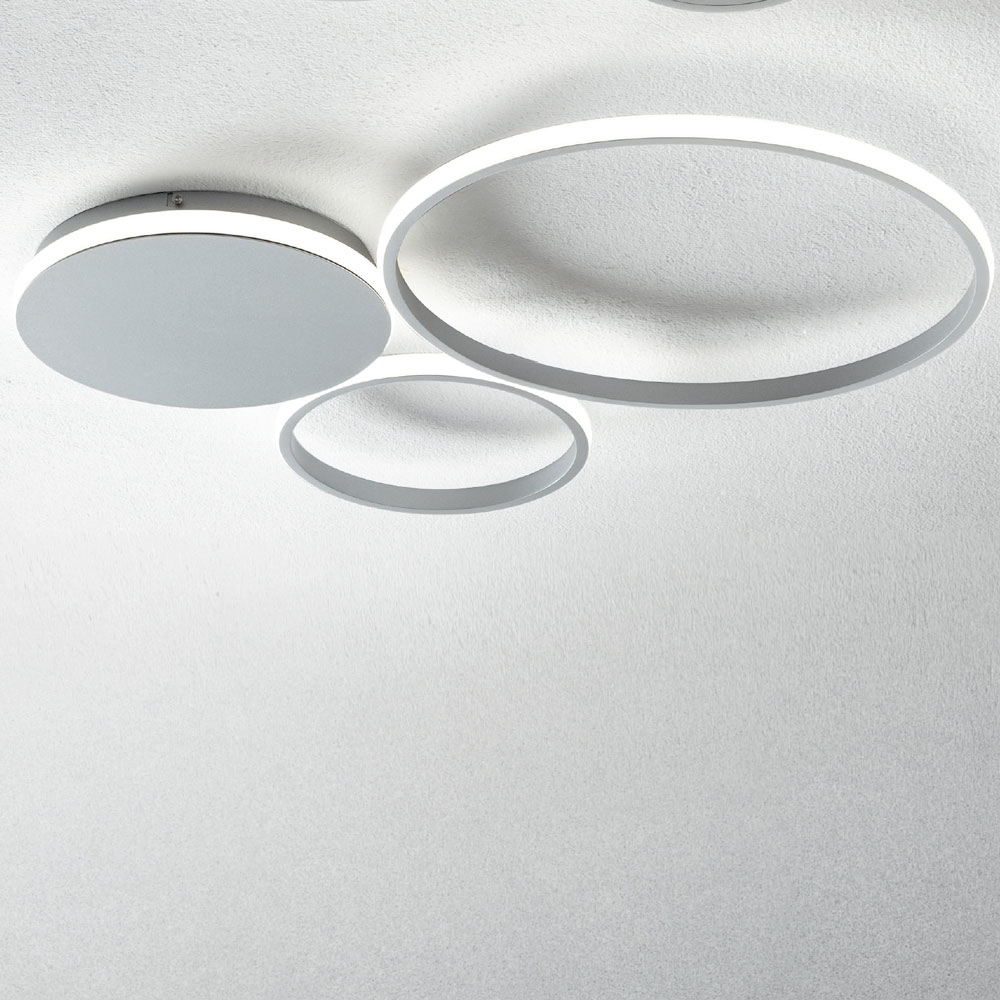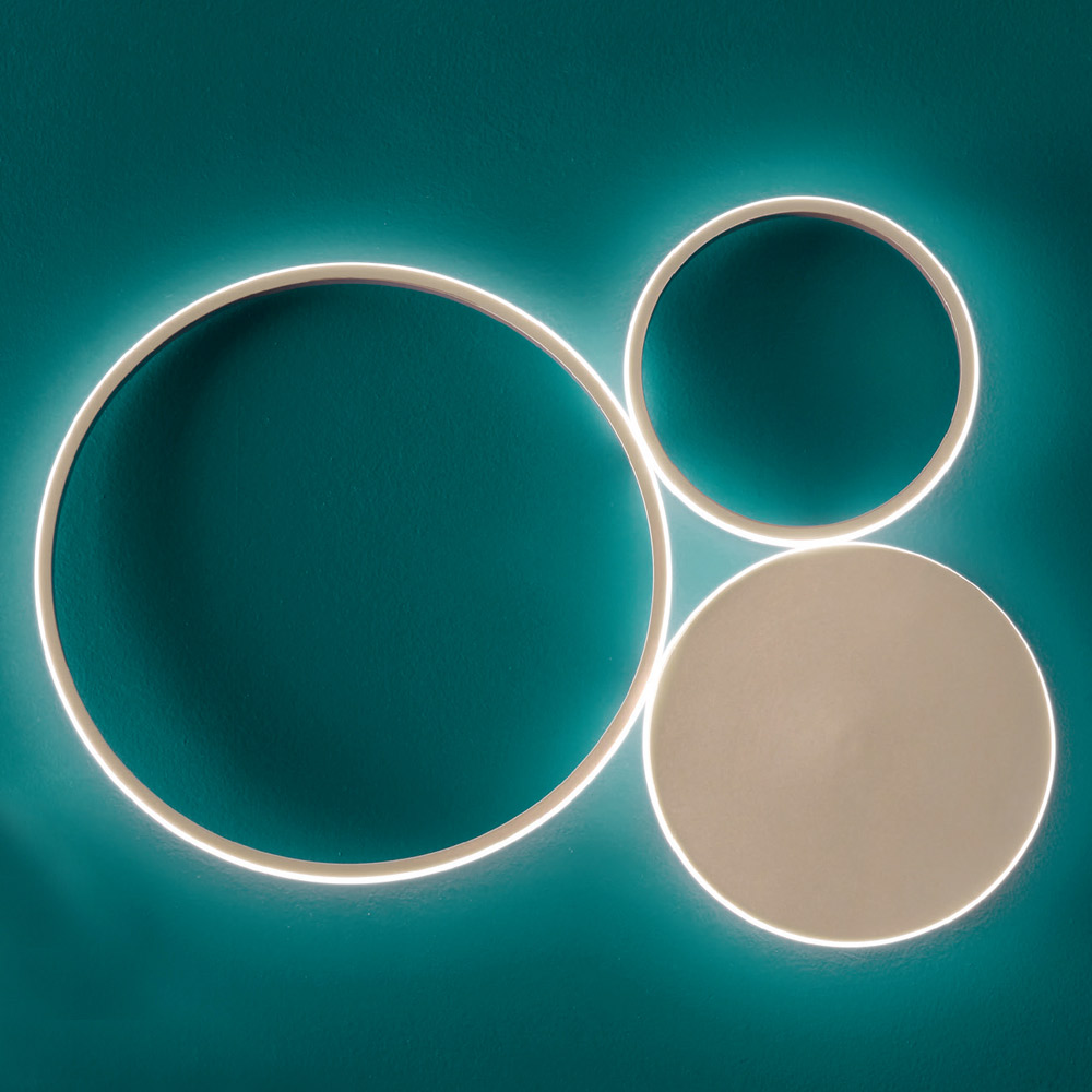 Llambë muri e bërë prej metali të lyerme burim LED të integruar të zbehtë. Mobilje me karakter të gjithanshëm , e cila mund të instalohet në çdo ambient shtëpiak: hyrje, kuzhinë, ambient ndenjeje, dhomë gjumi. Një kompozim origjinal i përbërë nga rrathë të madhësive të ndryshme të bashkuara së bashku dhe të mbuluar nga jashtë nga një shpërndarës i bardhë qumështi që mbyll shiritin led, duke krijuar efekte të mrekullueshme drite në mure për një rezultat me një efekt të fortë skenografik . Falë personalitetit të saj krijues dhe shpirtit të tij modern, ajo do të jetë në gjendje të ofrojë njëkohësisht një ndriçim cilësor dhe një element dekorativ unik të aftë për të pasuruar muret e shtëpisë me një prekje ekskluzive . Konformimi i tij lejon gjithashtu që të instalohet në tavan si një llambë klasike tavani, duke e bërë atë edhe më eklektik.