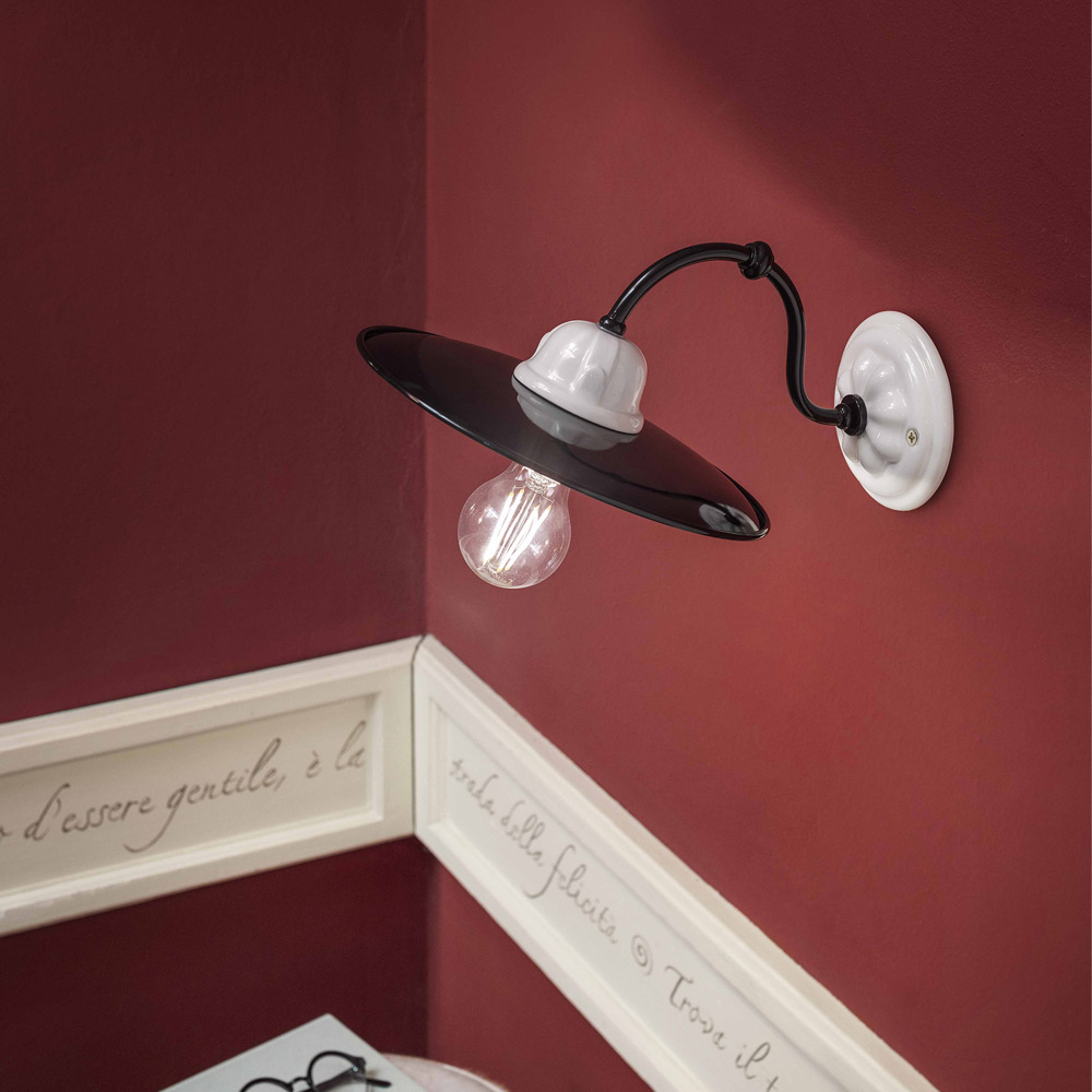 Llambë muri në stilin e bardhë qeramike dhe metal të zi Vintage - Fuqi