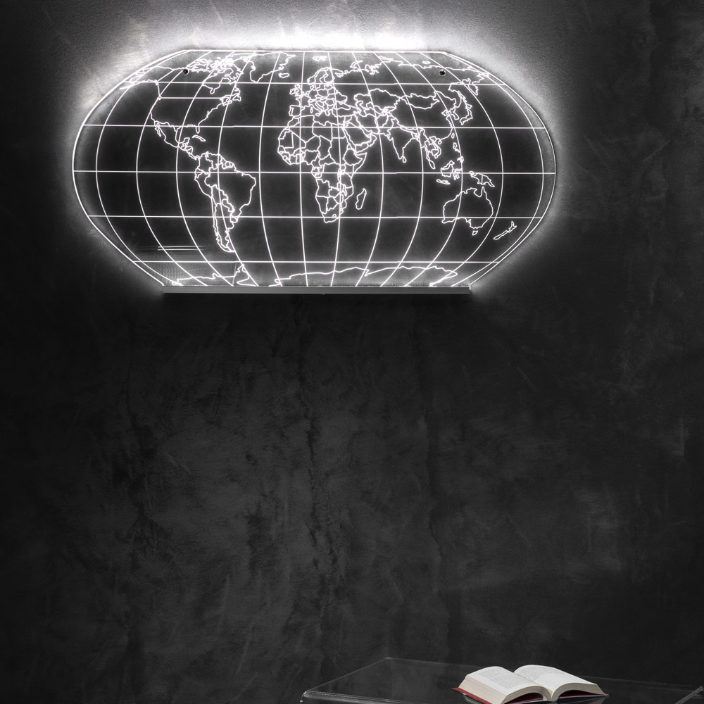 Kjo llambë muri është tërësisht prej kristali akrilik të gdhendur me teknologji lazer dhe e ndriçuar në të gjithë gjatësinë e saj nga një shirit led. Kristali akrilik është polimeri metakrilat që karakterizohet nga pastërtia e transparencës së tij që tejkalon kristalin natyror. Është një aksesor i jashtëzakonshëm mobilimi dhe dekorimi i murit, i cili shpërndan një dritë ambienti shumë të këndshme të disponueshme në variantin e ngrohtë ose të ftohtë.