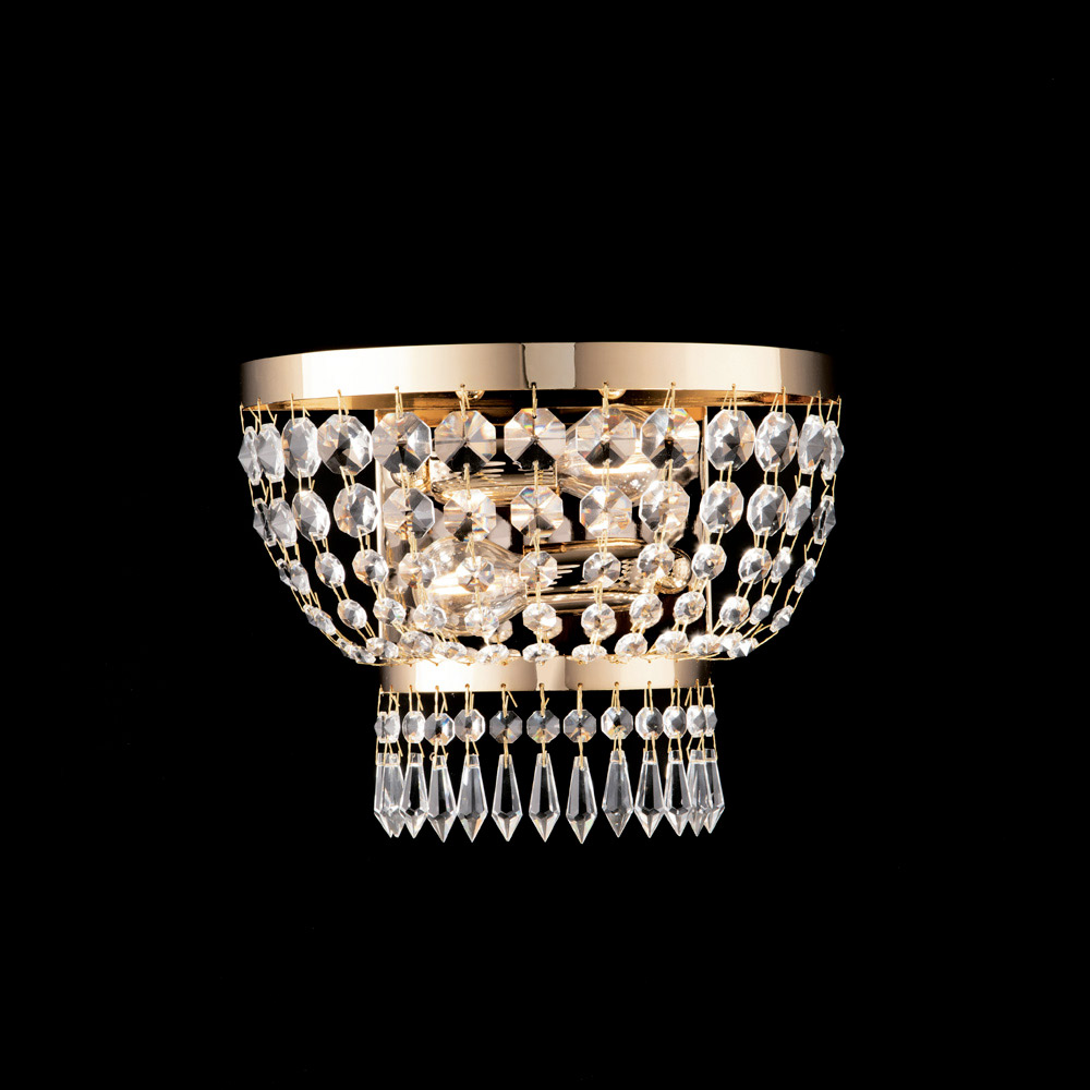 E rafinuar dhe e çmuar, kjo ndriçuese muri luksoze prej hekuri dhe bronzi me gurë të çmuar është një element ndriçimi i projektuar për të pasuruar muret me një elegancë diskrete. Struktura kompakte, e zbukuruar me gurë të çmuar të ndritshëm dhe varëse dekorative , përhap një dritë të shkëlqyer dhe mbështjellëse, duke krijuar lojëra reflektimesh sugjestive.