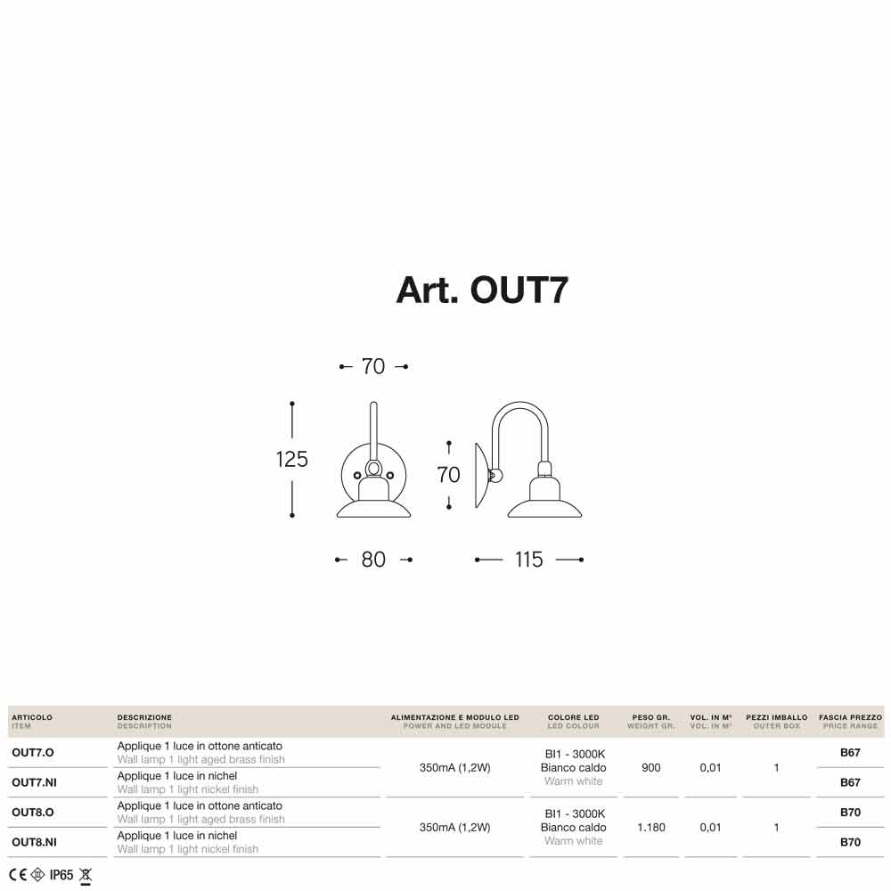 Ky artikull nuk mund të shitet në SHBA. Llambë muri e jashtme projektuese Giulietta Sprint - E vogël nga Aldo Bernardi, e bërë prej bakri dhe bronzi. Giulietta Sprint është në dispozicion me përfundimin prej bronzi të ngrohtë ose antik.