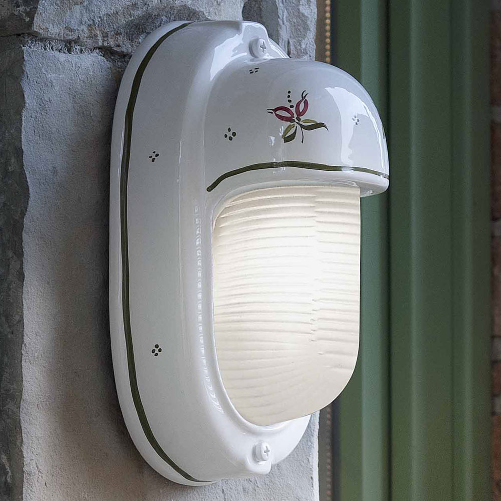 Kjo llambë muri vertikale e kopshtit është tërësisht prej qeramike e zbukuruar me lule të pikturuara me dorë për një stil klasik dhe harmonik midis formës dhe ngjyrave.
