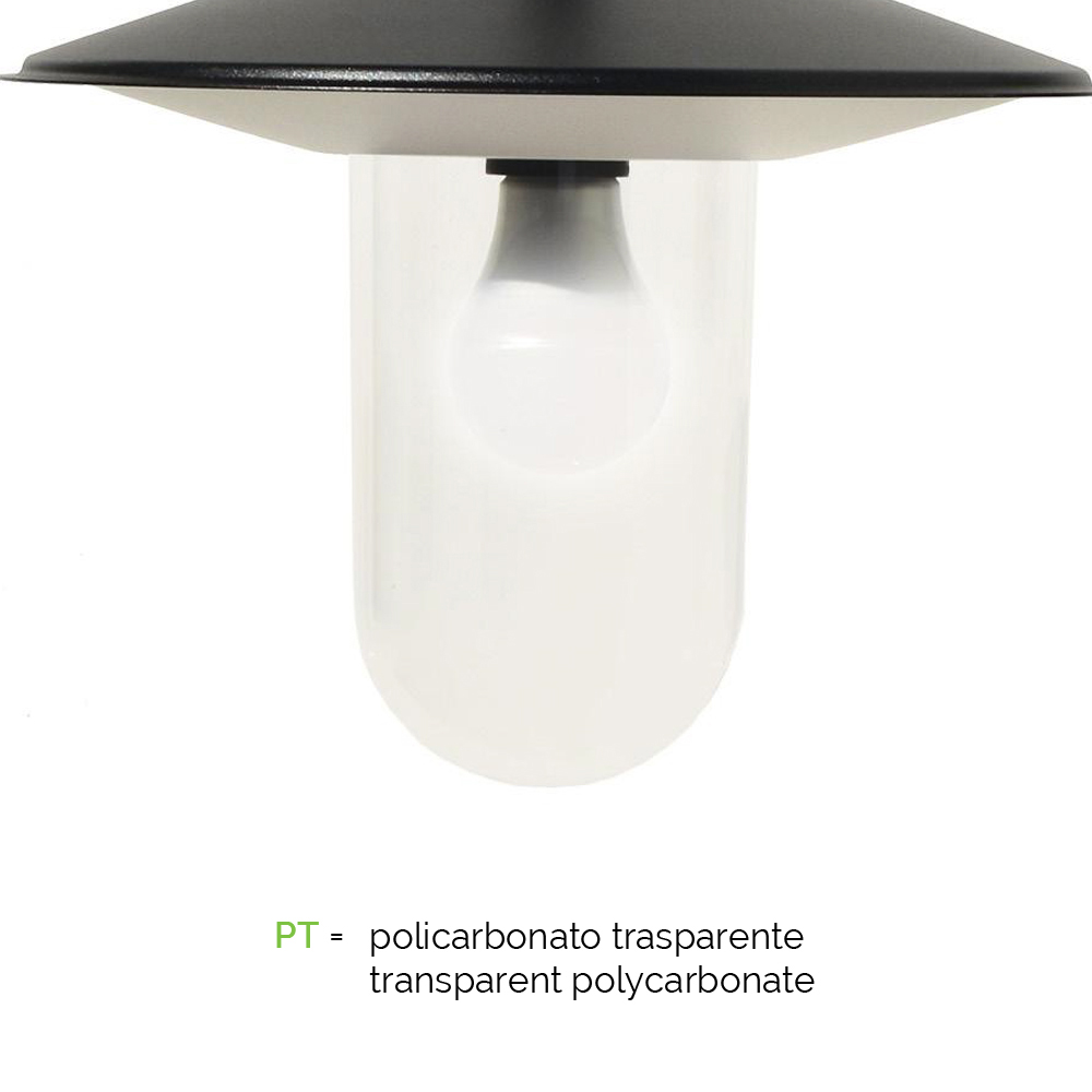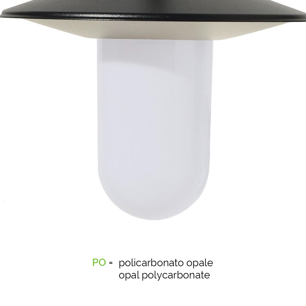 Drita e murit të jashtëm e prodhuar nga prodhimi 100% Made in Italy me strukturë alumini të derdhur në formë grije antracit dhe difuzor polikarbonat . I kompletuar me vida inox. Përsosja dhe efikasiteti janë karakteristikat kryesore të kësaj mobilie me një personalitet eklektik, ideale për mobilimin dhe bërjen e çdo hapësire të jashtme elegante dhe të saktë, si shtëpiake ashtu edhe me kontratë.
