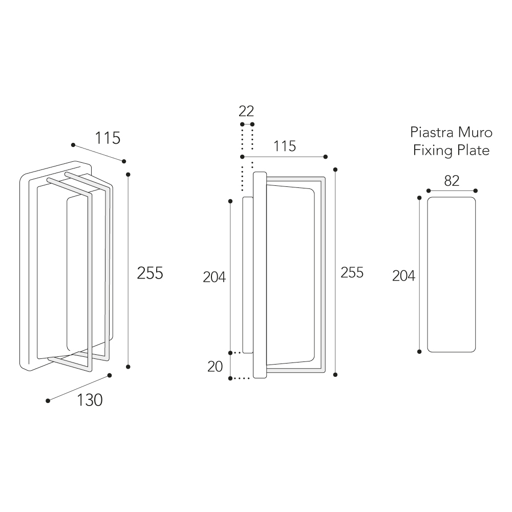 • Pllaka muri: 20.4 × 8.2 cm