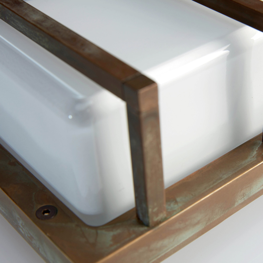 E thjeshtë dhe elegante, kjo dritë muri e punuar me dorë është një zgjidhje e rafinuar ndriçimi, e projektuar për të përmirësuar muret moderne dhe hapësirat bashkëkohore. Struktura prej bronzi e derdhur , e kombinuar me një difuzor drejtkëndor prej qelqi opal , krijon një dritë të butë dhe të njëtrajtshme, ideale për ndriçim mikpritës dhe funksional.