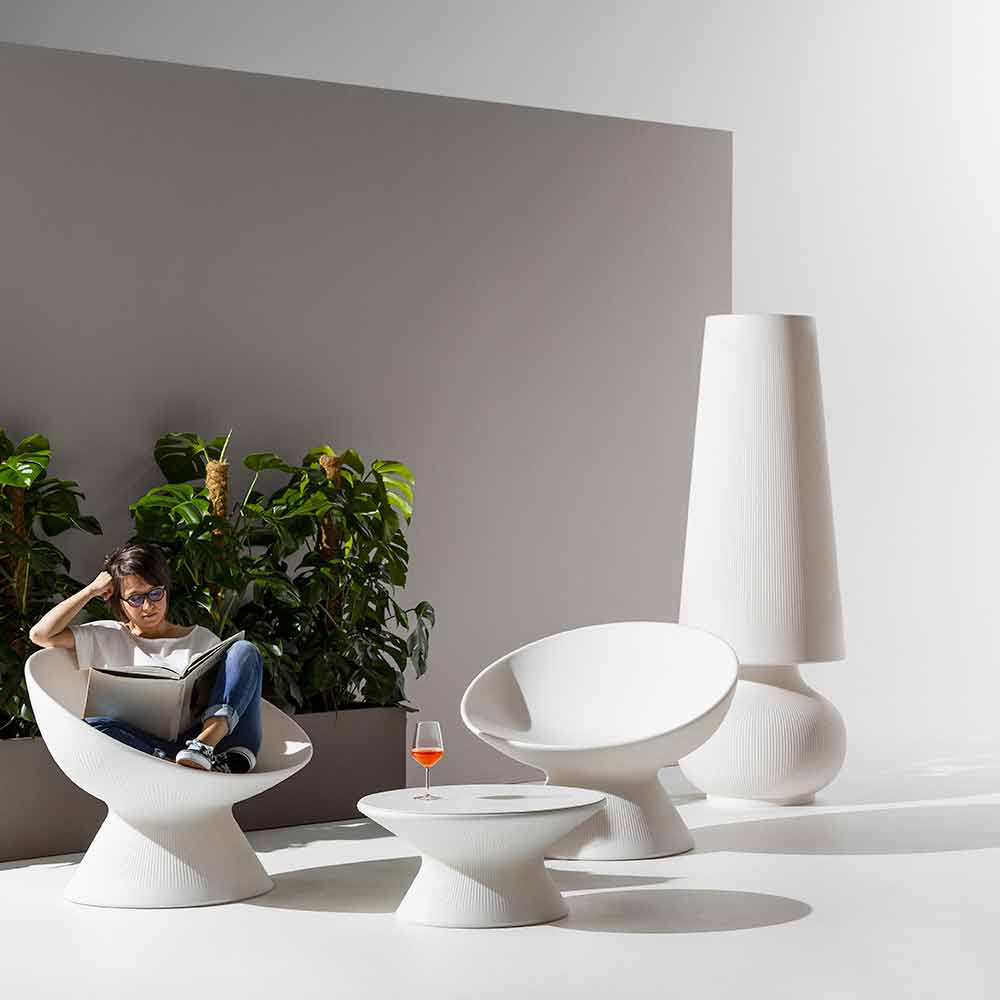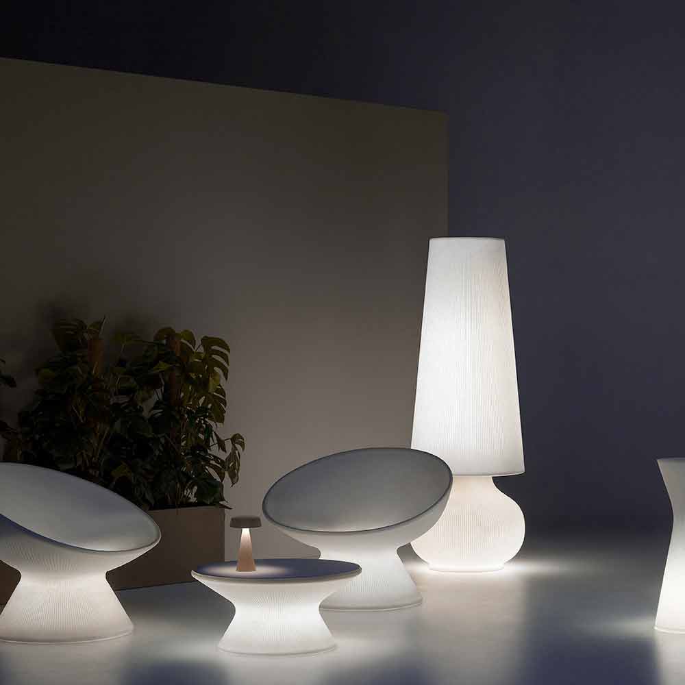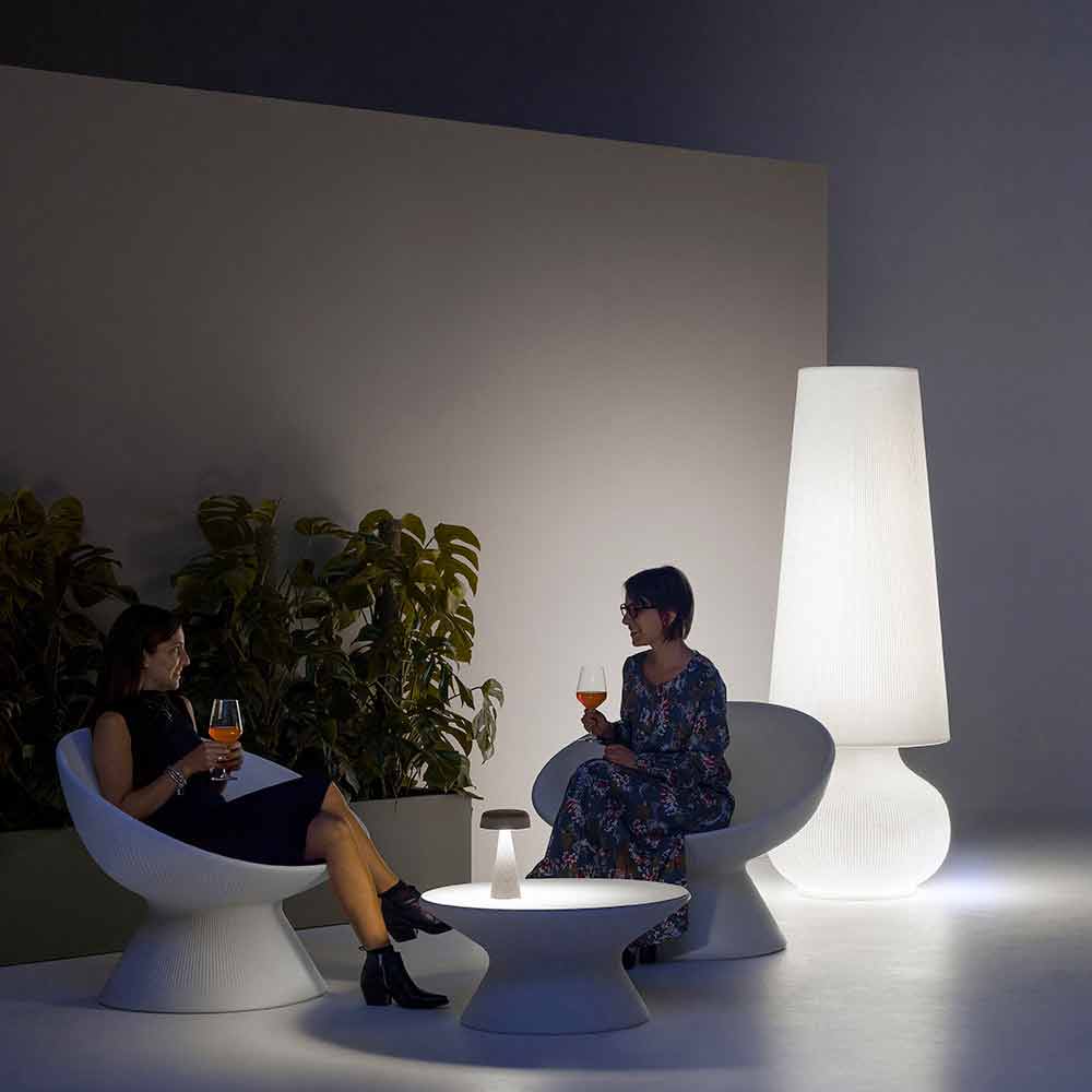 Llambë dyshemeje për mobilimin e hapësirave të jashtme të prodhuara në Itali në polietilen të bardhë. Karakterizuar nga një dizajn elegant dhe modern, kjo llambë me një prani skulpturore është një zgjidhje e përsosur mobilimi për ambiente të jashtme të tilla si kopshte dhe tarraca ose hapësira të kontraktuara ku është e nevojshme të pasuroni estetikën me një prekje inovative dhe origjinale.