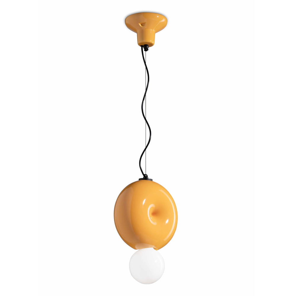 Kjo llambë varëse është një shembull i shkëlqyer sesi dizajni mund të lartësojë një hapësirë jetese ose pune. Baza qeramike është modeluar me kujdes që pasqyron mjeshtërinë e artizanëve italianë . Dizajni është bashkëkohor, por me një prekje nostalgjie, duke e bërë atë ideal për ata që duan kombinimin e modernitetit dhe ngrohtësisë retro.