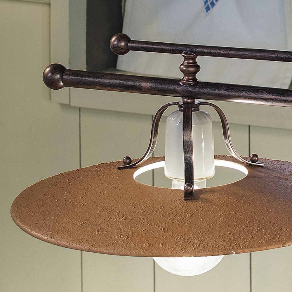 Llambë pezullimi me 2 drita në hekur dhe qeramikë të papërpunuar dore - Bolonja