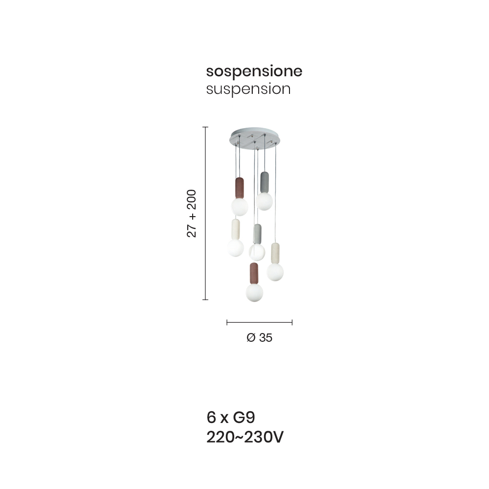 6 drita - diametri 35 x H 227 cm (6x G9 220-230V);