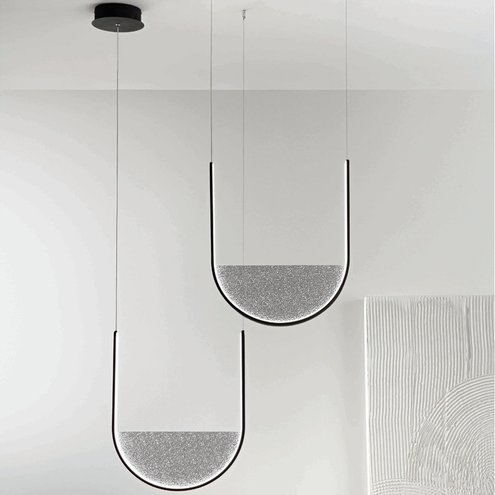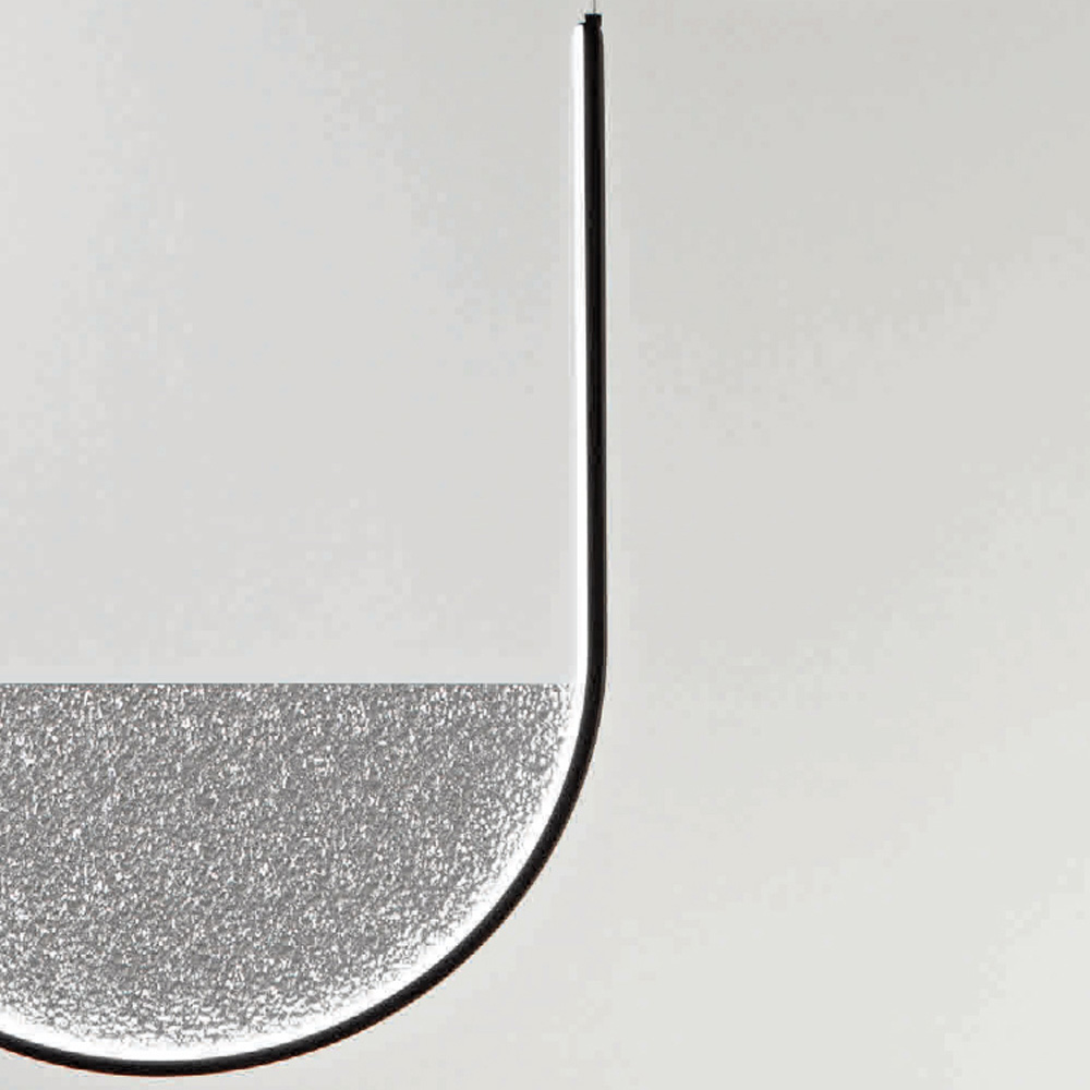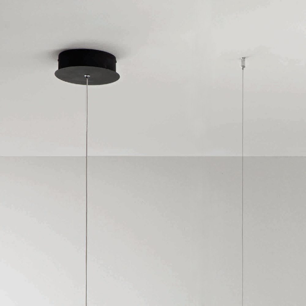 Llambë pezullimi tërësisht e prodhuar në Itali e bërë prej metali të lyer me ngjyrë të zezë me futje të lëvizshme në xham të tymosur me dritë LED që zvogëlohet dhe kabllo të rregullueshme në gjatësi. Ky produkt synon të përmirësojë traditën përmes një qasjeje bashkëkohore ku stili, klasi dhe inovacioni bashkohen për të krijuar formula të reja dizajni për të mobiluar dhe ndriçuar çdo ambient me shije dhe karakter. Pikat e forta janë veçantia e formave , cilësia e materialeve dhe veçantia e burimit të dritës .