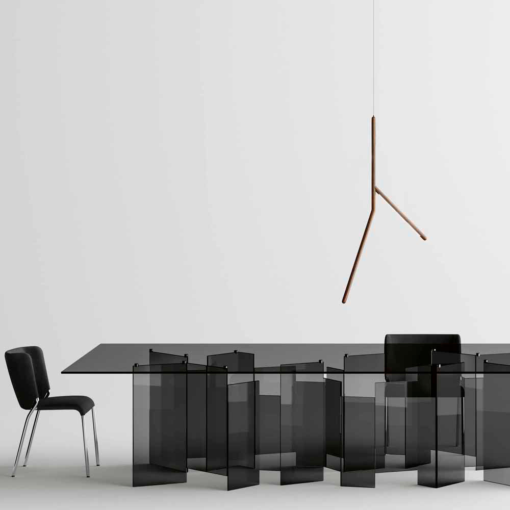 Llambë pezullimi prej druri të ngurtë në përfundime të ndryshme me sistem ndriçimi LED COB 13W 1200LM dhe kabllo pezullimi të zezë të rregullueshme dhe të zgjatshme deri në 1.5 mt. Kjo llambë kombinon mjeshtërinë e drurit të ngurtë me teknologjinë e ndriçimit. Shenja delikate grafike theksohet në instalimet me llamba të shumta, duke u bërë protagonist absolut i mjedisit.