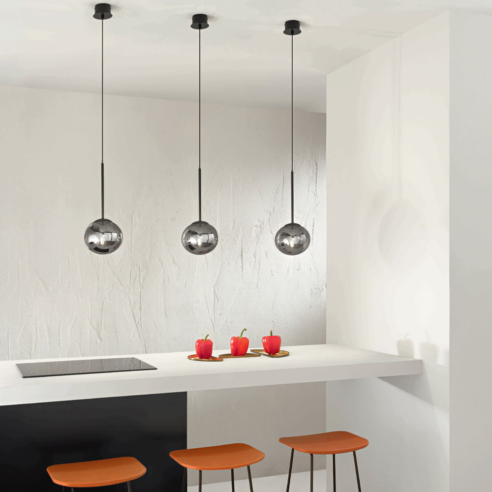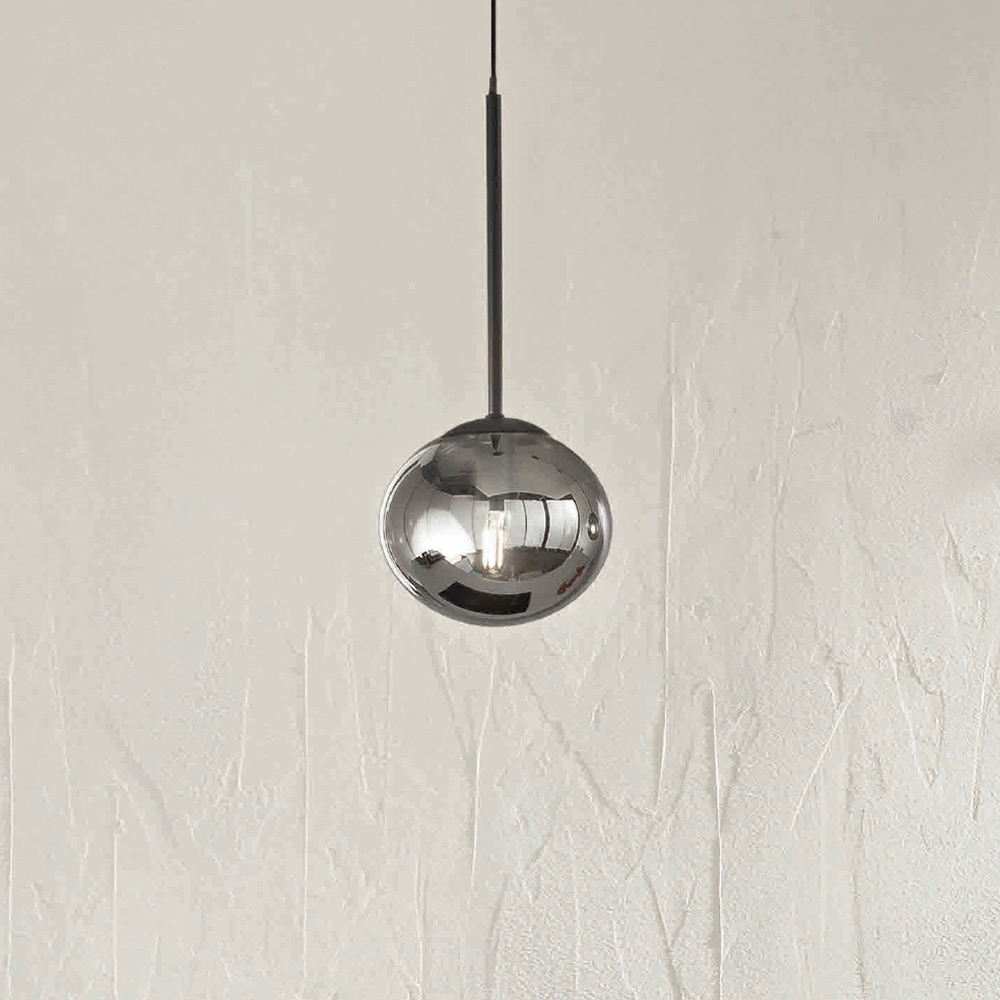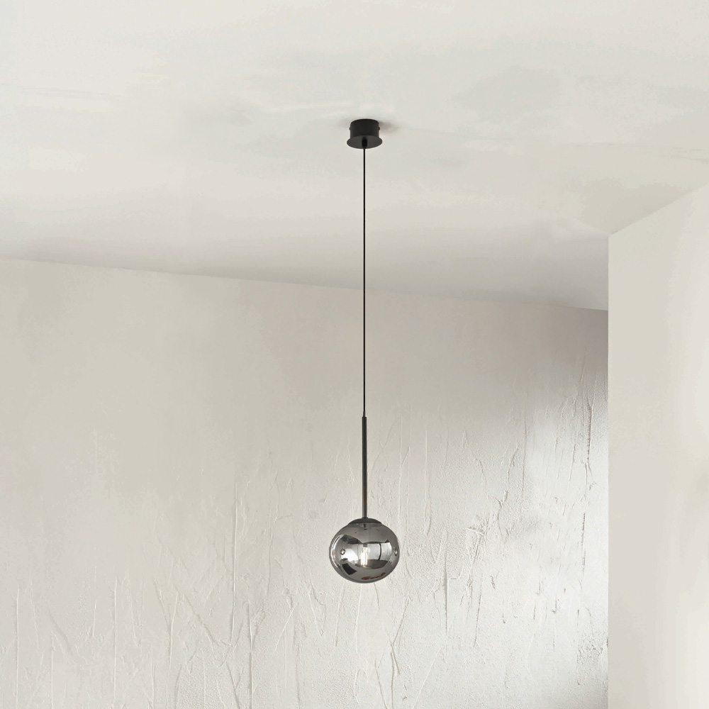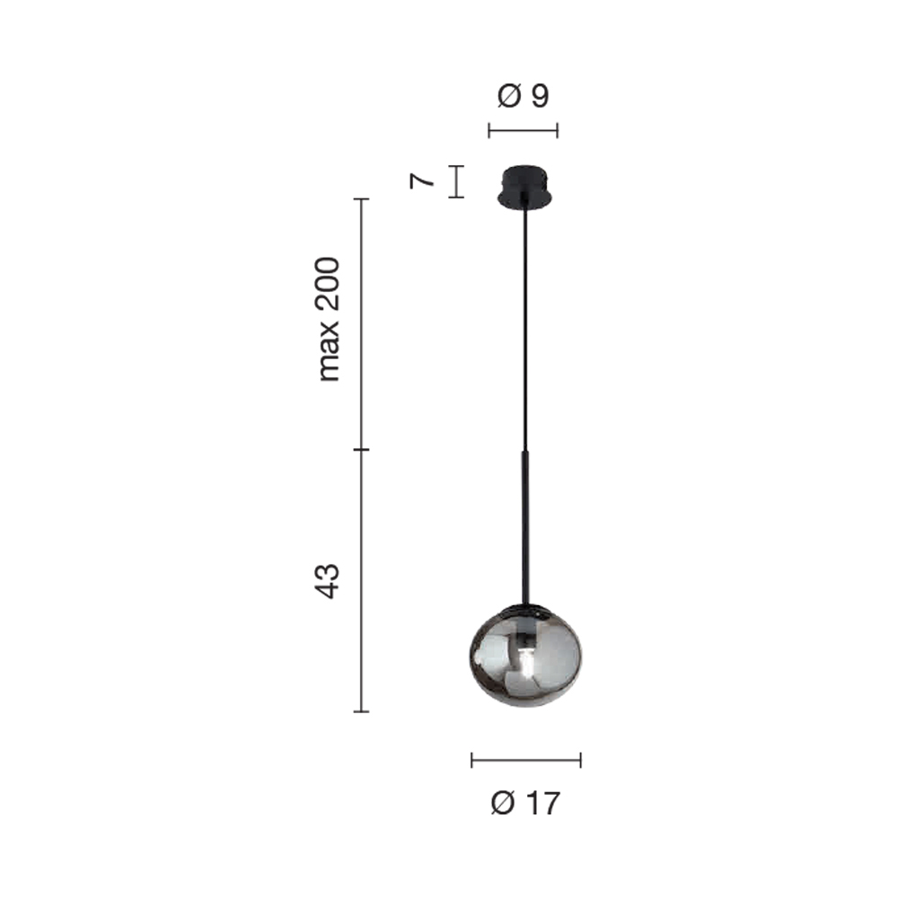Llamba pezulluesee prodhuar tërësisht në Itali e prodhuar nga metali i lyer dhe xhami i zi, me dritë LED dhe kabllo të rregullueshme në gjatësi.