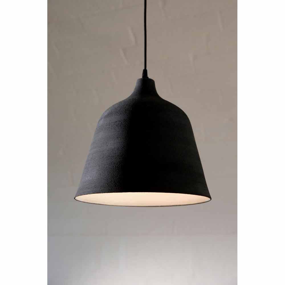 Kjo llambë pezullimi origjinale dhe e veçantë ka një dizajn të stilit industrial me linjat e thjeshta dhe thelbësore të sipërfaqeve të lakuara dhe të lëngshme, të theksuara nga dendësia e materialit të materialit të errët.