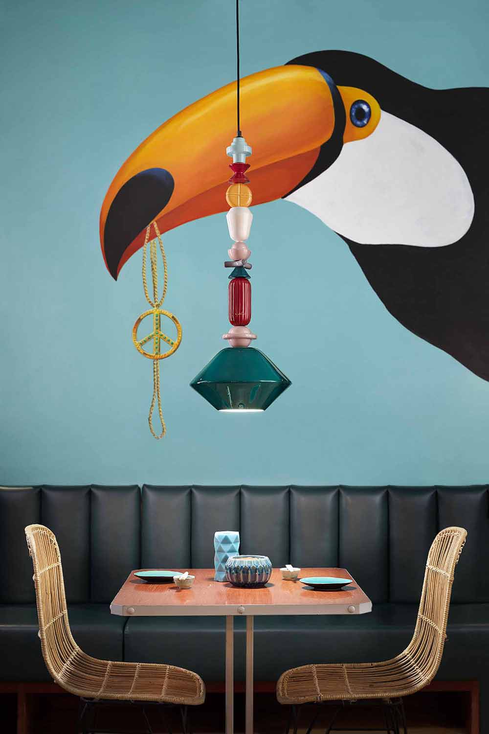 Lariat është një paraqitje unike dhe e veçantë e elementeve qeramike shumëngjyrëshe që ndjekin njëri-tjetrin vertikalisht deri në difuzorin qendror.