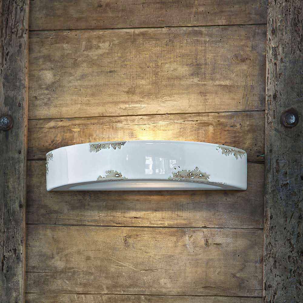 Dritë muri qeramike gjysmë hëne vintage Helen Ferroluce. Helen është një dritë fantastike muri, e punuar me dorë në qeramikë nga artizanë të aftë në Itali. Helen është një aplikacion minimal dhe funksional, i karakterizuar nga një formë gjysmë hëne, e përbërë nga linja elegante të përkulura. E veçanta e kësaj llambë qëndron në përpunimin e përfundimit të saj të jashtëm, të dekoruar në mënyrë të tillë sikur koha t'i kishte shënuar rrugën. Riprodhimi i erozionit të kohës i kombinuar me sipërfaqet me shkëlqim i japin këtë vlerë shtesë kësaj llambë muri, duke e bërë atë të përsosur për ndriçimin e pikturave dhe pasqyrave. Ideale për ambiente me stil urban dhe shije vintage. Helen përbëhet nga një dizajn thelbësor dhe elegant, i cili ruan esencialitetin e përdorimit dhe siguron një ekuilibër delikat midis formave dhe toneve. Detaje të vogla për një efekt të shkëlqyer me një aromë antike! Llamba e disponueshme në përfundime të ndryshme. Kontrolloni tabelën e ngjyrave dhe vendosni kodin e përfundimit që dëshironi në kutinë e duhur!