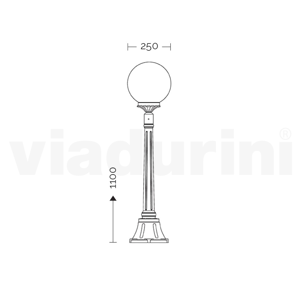 Llambë kopshti e bërë me një strukturë alumini të derdhur dhe shpërndarës sferash akrilike opale , tërësisht Prodhuar në Itali.