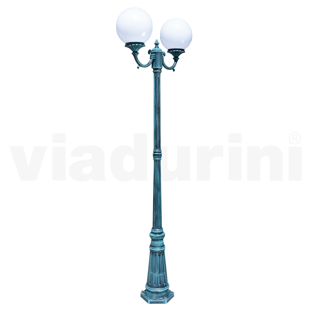Llambë kopshti e bërë me një strukturë alumini të derdhur dhe shpërndarës sferash akrilike opale , tërësisht Prodhuar në Itali.
