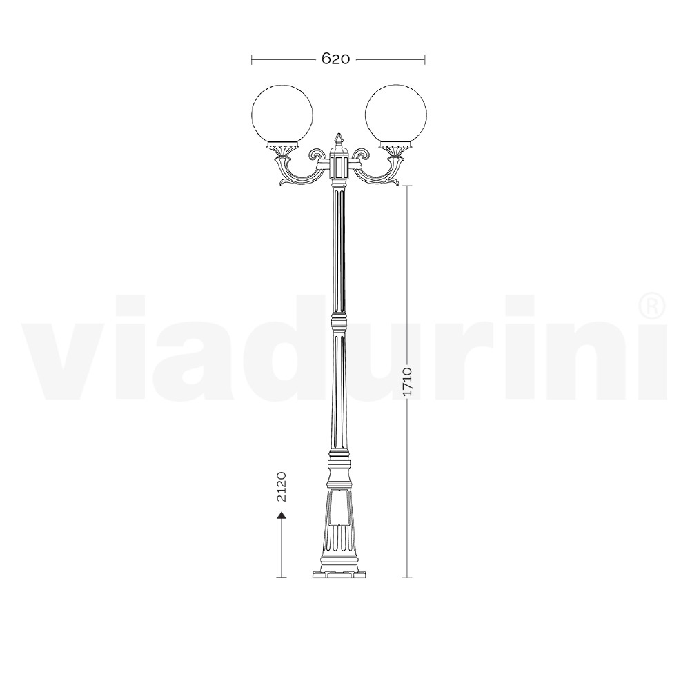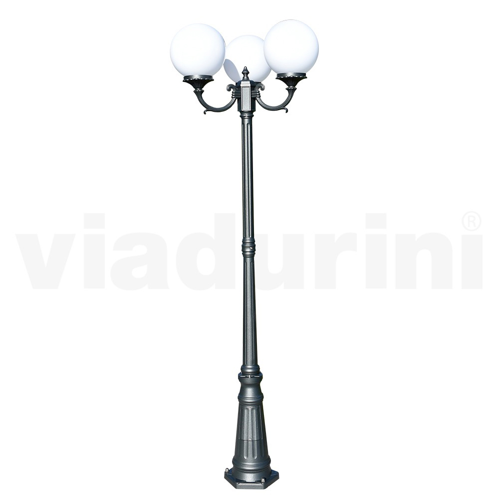Llambë kopshti e bërë me strukturë alumini të derdhur në formë antraciti dhe difuzues sferash akrilike opal , tërësisht Prodhuar në Itali.