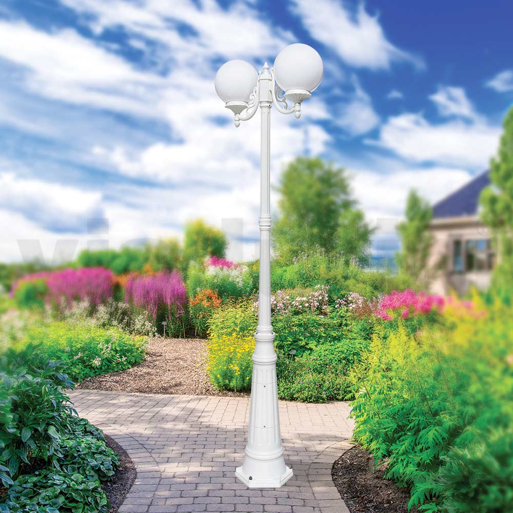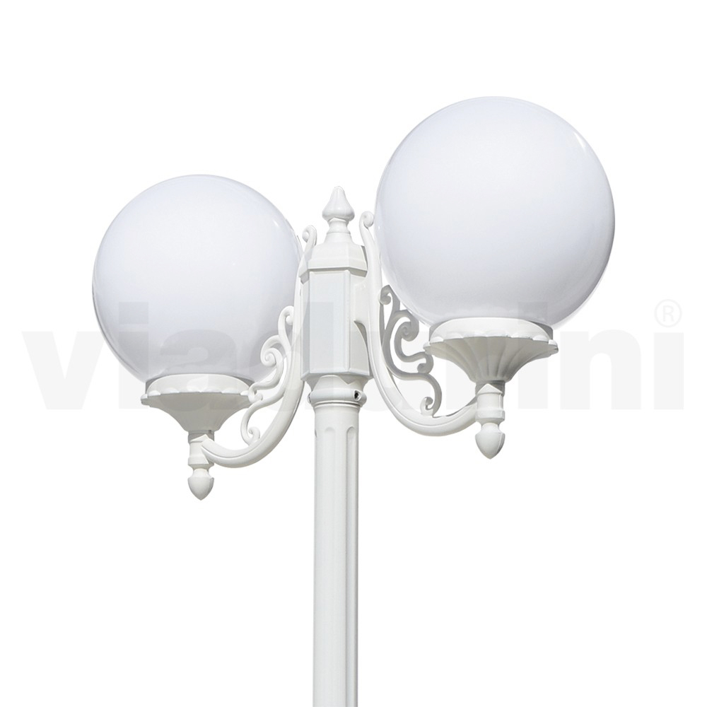 Llambë kopshti e bërë me një strukturë alumini të derdhur dhe shpërndarës sferash akrilike opale , tërësisht Prodhuar në Itali.