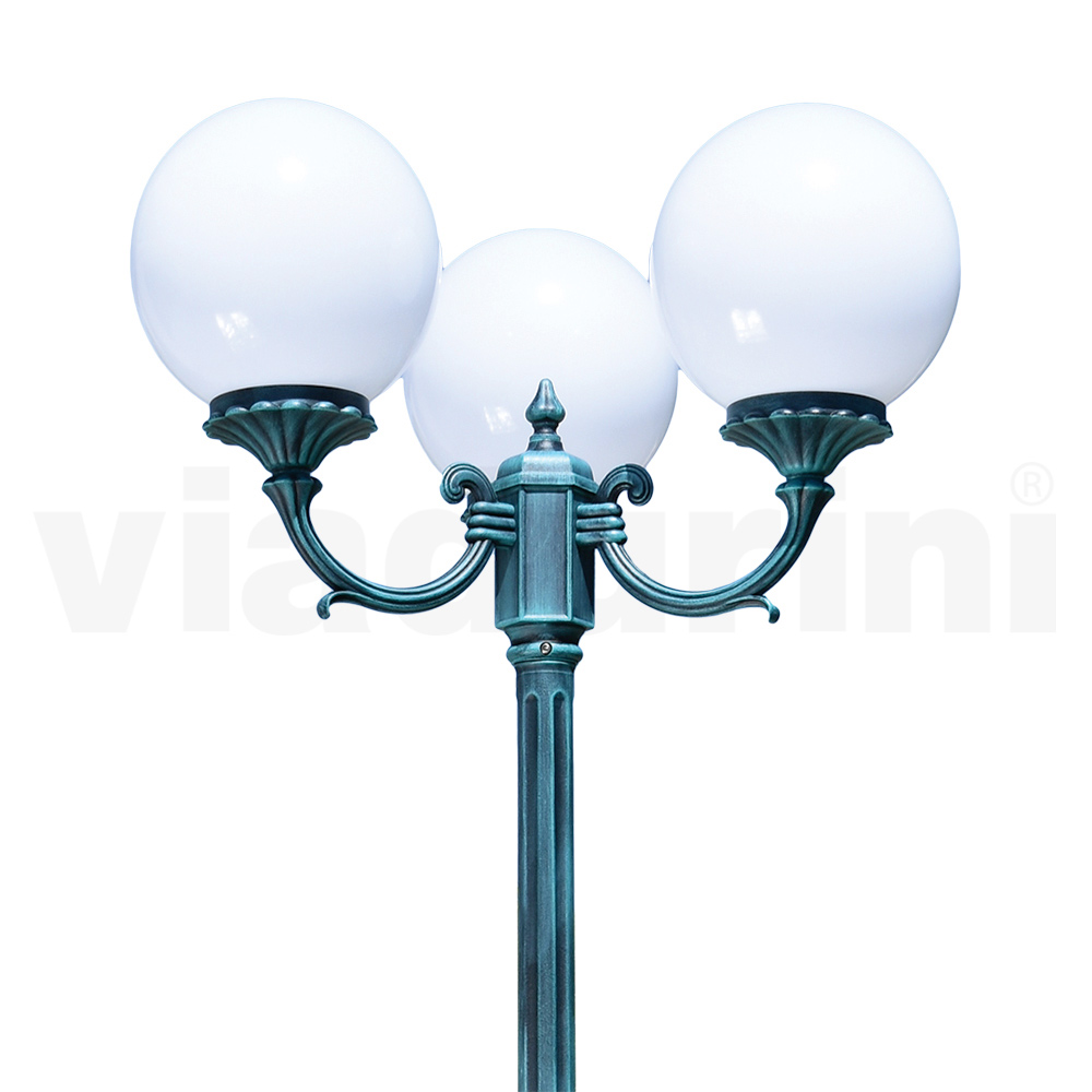 Llambë kopshti e bërë me një strukturë alumini të derdhur dhe shpërndarës sferash akrilike opale , tërësisht Prodhuar në Itali.