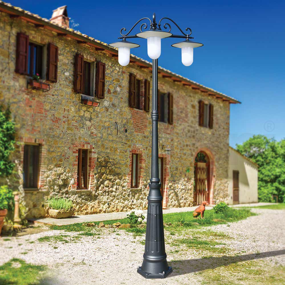 Llamba e jashtme 3-drite e prodhuar në Itali nga alumini i derdhur me llambë me fije gri antracit dhe shpërndarës polikarbonat . I kompletuar me vida inox. Një dizajn elegant me një shpirt të lashtë i aftë për të mobiluar hapësirat e jashtme si kopshte, veranda, rrugë dhe vendkalime në një mënyrë të saktë dhe funksionale. Ideale për ata që kërkojnë orendi të rafinuara, unike dhe me klas .