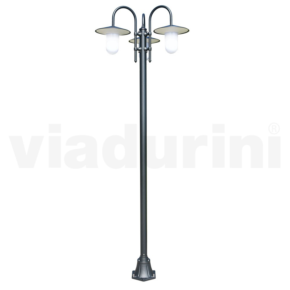 Llambë rruge vintage me 3 drita alumini dhe polikarbonat Prodhuar në Itali.