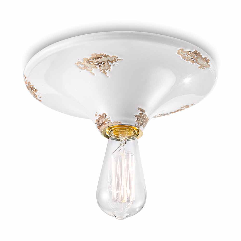 Drita e tavanit vintage në qeramikë të punuar me dorë Erica Ferroluce Erica është një dritë tavani fantastike, e punuar me dorë në qeramikë nga artizanë të aftë në Itali. Erica është një dritë tavani minimale dhe funksionale. E veçanta e kësaj llambë qëndron në përpunimin e përfundimit të saj të jashtëm, të dekoruar në mënyrë të tillë sikur koha t'i kishte shënuar rrugën. Riprodhimi i erozionit të kohës i kombinuar me sipërfaqet me shkëlqim i japin atë vlerë shtesë kësaj llambë tavani. Ideale për ambiente me stil urban dhe shije vintage. Erica përbëhet nga një dizajn thelbësor dhe elegant, i cili ruan esencialitetin e përdorimit dhe siguron një ekuilibër delikat midis formave dhe toneve. Detaje të vogla për një efekt të shkëlqyer me një aromë antike! Llamba e disponueshme në përfundime të ndryshme. Kontrolloni tabelën e ngjyrave dhe vendosni kodin e përfundimit që dëshironi në kutinë e duhur!