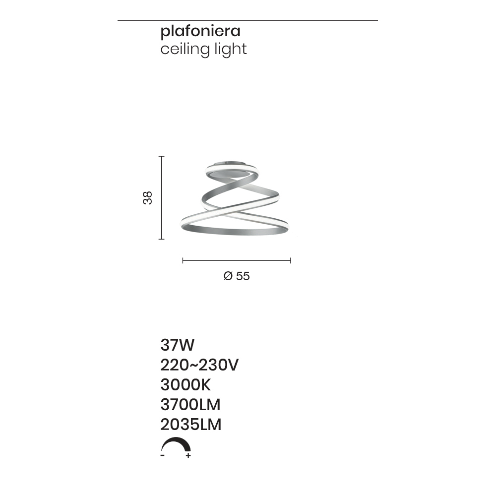 Llamba tavani me strukturë metalike të lyer me ngjyrë të bardhë e kompletuar me burim drite LED . Një dizajn dinamik dhe modern i aftë për të rikrijuar ndjesinë e një fjongoje që rrotullohet duke pasuruar kështu vlerën dhe estetikën e produktit. Kjo ndjesi lëvizjeje bëhet pika e saj e fortë dhe e lejon atë të pushtojë qendrën e vëmendjes në mjedise shtëpiake ose të kontraktuara me një stil bashkëkohor dhe avangard. Teknologjia moderne LED siguron gjithashtu ndriçim cilësor duke kompletuar llambën dhe duke e bërë atë një plotësues optimal për ata që kërkojnë funksionalitet dhe dizajn në një produkt të vetëm.