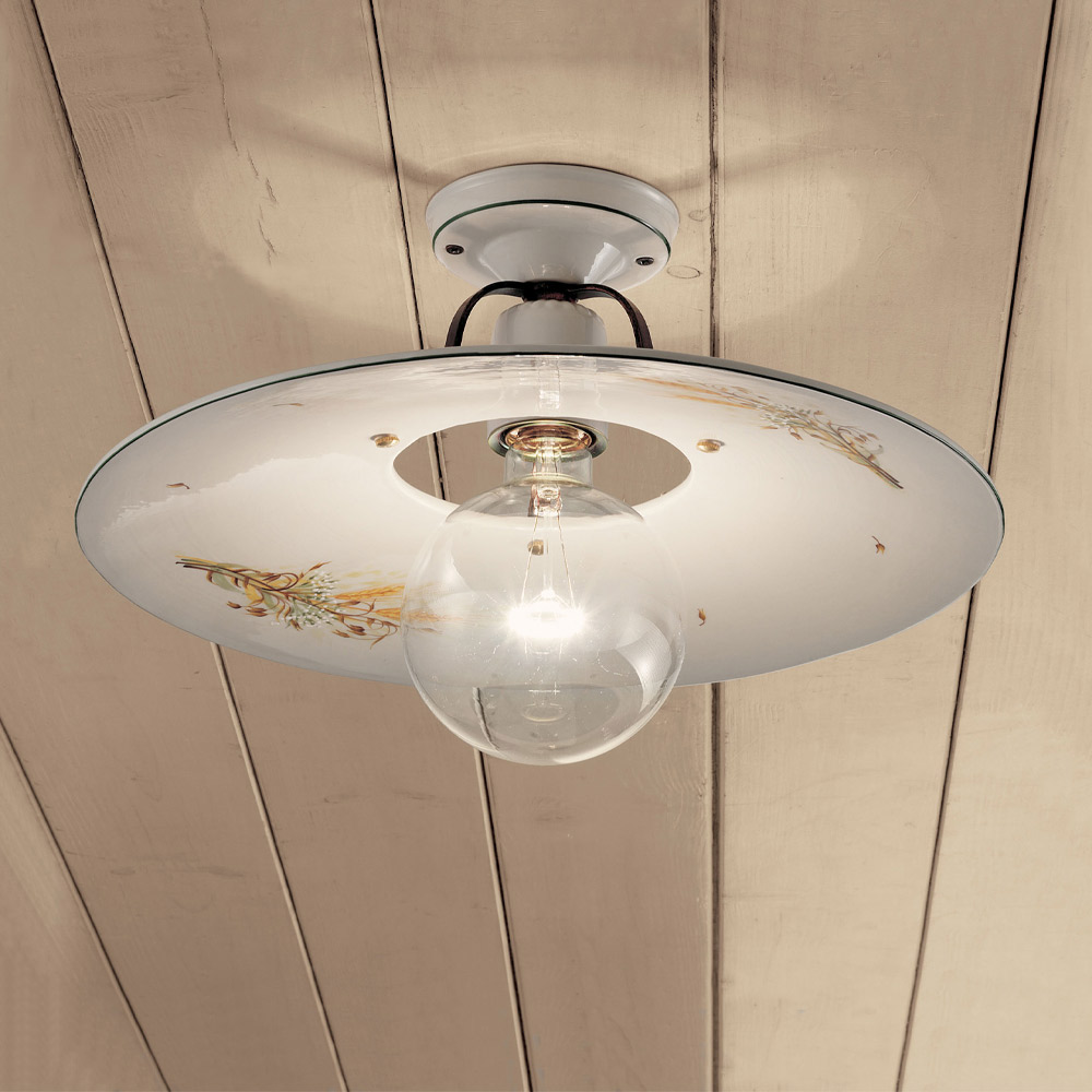 Llamba tavani vintage prej hekuri dhe qeramike te vrazhde me dekorime dore, 2 permasash te prodhuara ne Itali nga Ferroluce.
