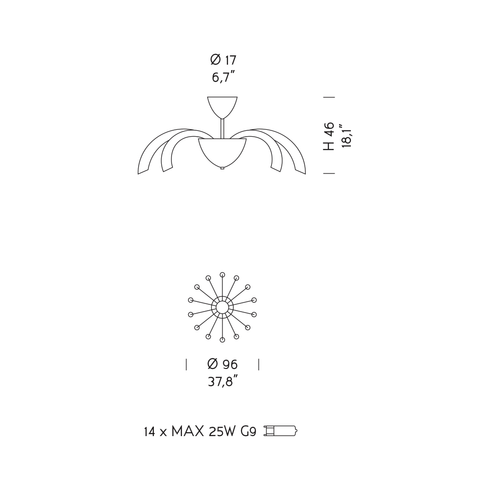 Llamba (nuk përfshihen) : 14 x MAX 25W G9