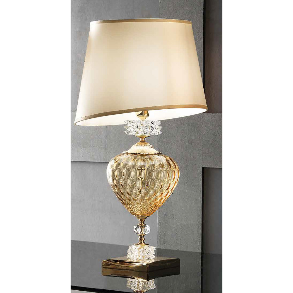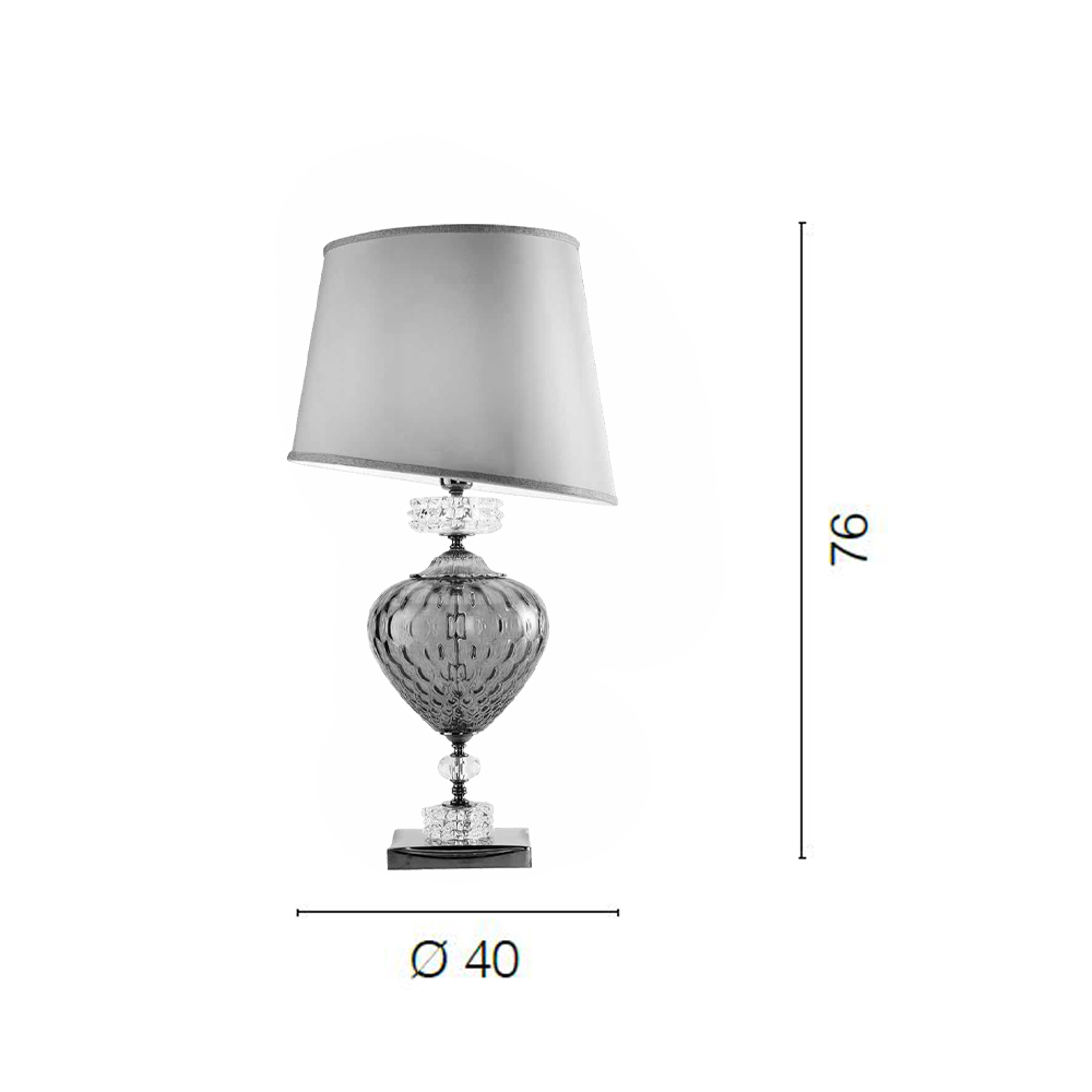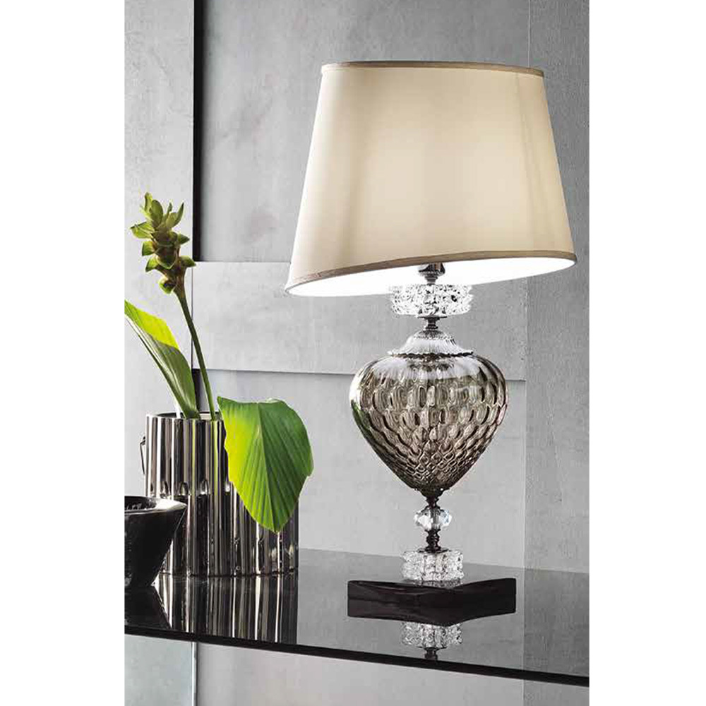 Llamba e tavolinës me abazhur është një aksesor ndriçimi luksoz tërësisht i prodhuar në Itali në xham të punuar me dorë të cilësisë më të lartë. Ajo që e bën atë unike dhe madhështore janë detajet dhe përfundimet metalike që i japin jetë një stili klasik të dikurshëm, sharmi i të cilit bëhet protagonist në hapësirën e destinacionit.