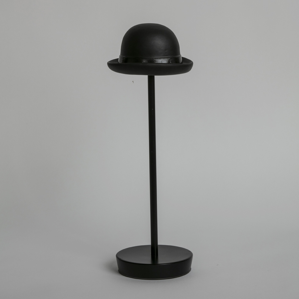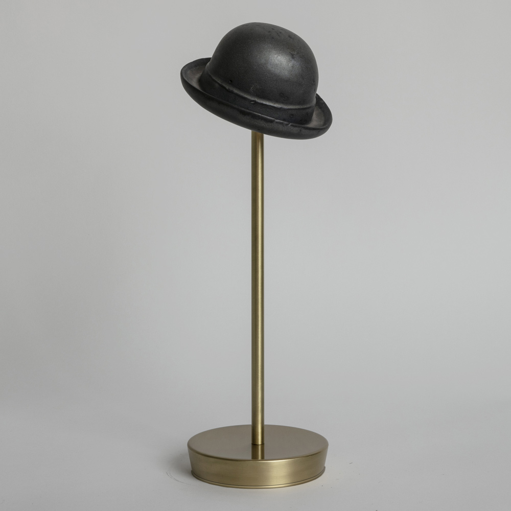 Kjo llambë tavoline përmban një dizajn unik dhe simpatik, perfekt për t'i shtuar një prekje stili dhe origjinaliteti çdo ambienti. Baza është e punuar në mënyrë elegante prej bronzi , duke ofruar një kontrast të sofistikuar me kapelën që shërben si abazhur. Ky kombinim jo vetëm që tërheq vëmendjen, por gjithashtu siguron një dritë të butë ideale për krijimin e një atmosfere komode dhe relaksuese.