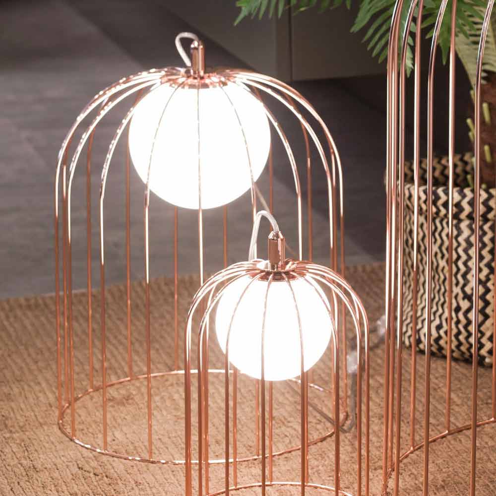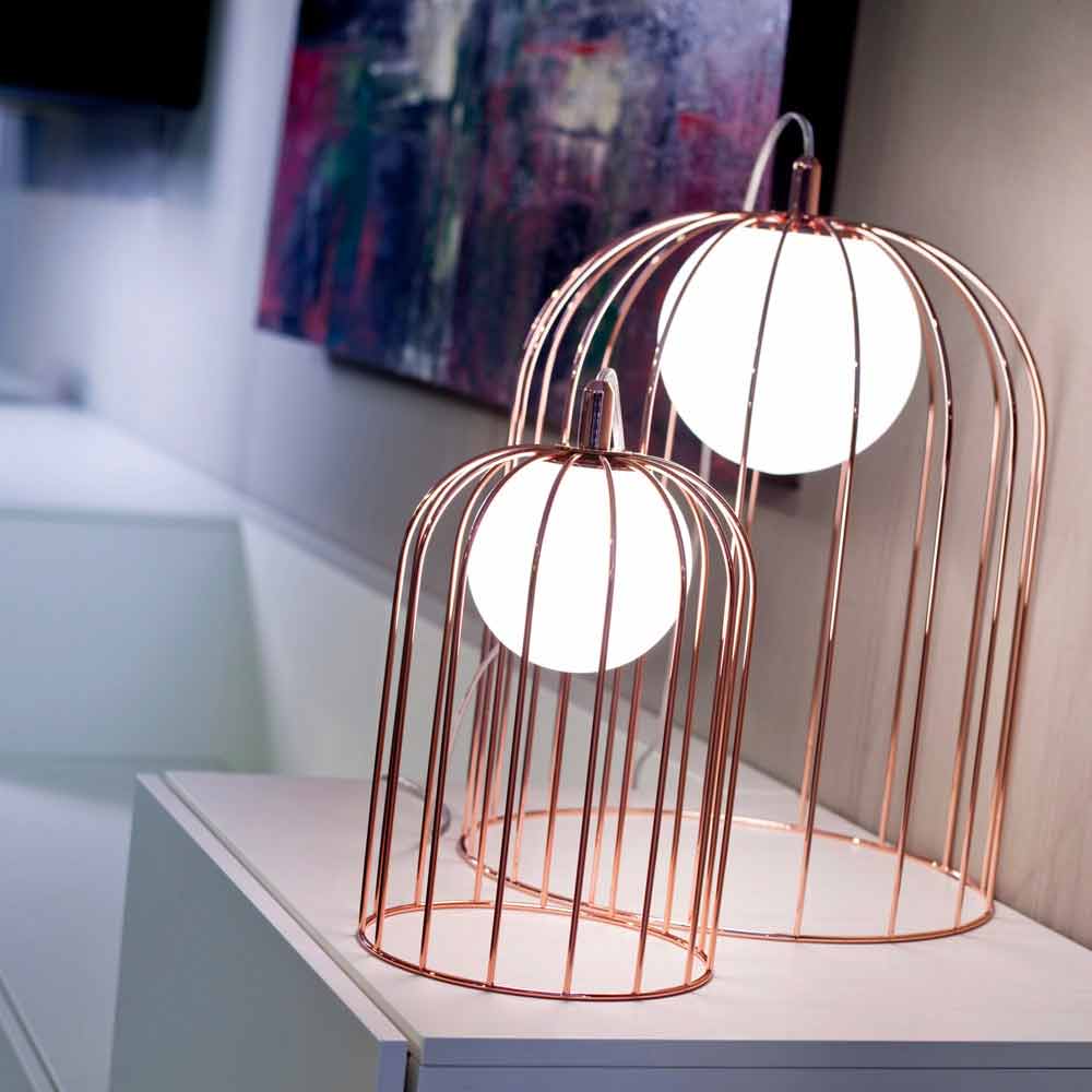 Llambë tavoline kafaz Selene Kluvì e bërë nga qelqi në lulëzim, H33 H41cm, dizajn modern.