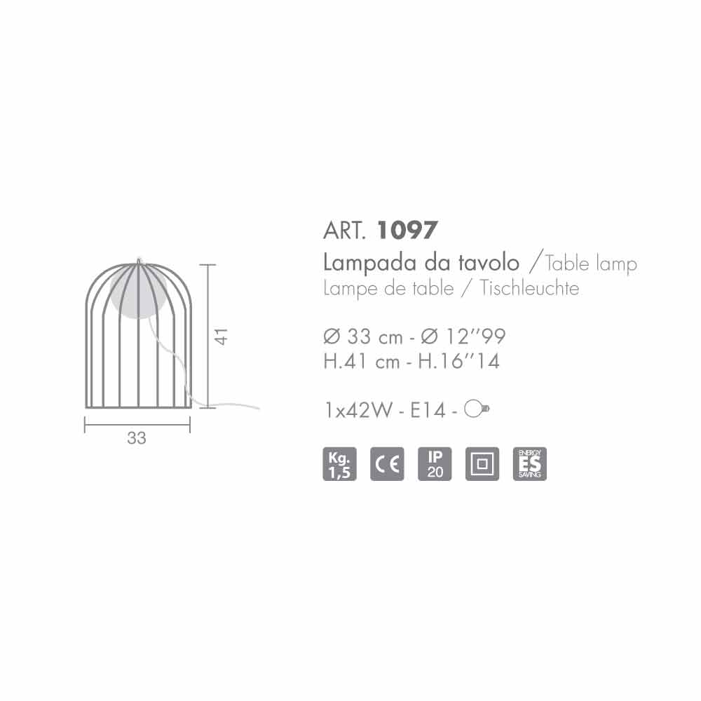 Mbledhja e tre pezullimeve dhe tre llambave të tavolinës, të cilat mund të arrijnë një madhësi të konsiderueshme, të përbërë nga një kafaz metalik dhe një top qelqi me qumësht të bardhë.