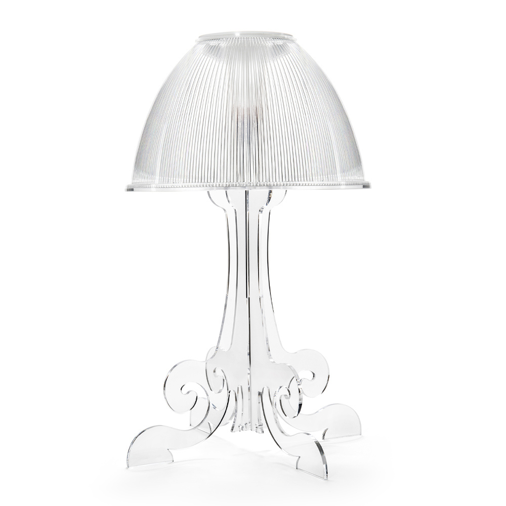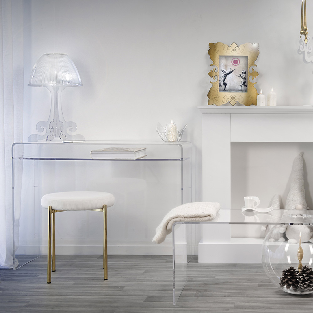 Tavolinë e madhe dhe e sofistikuar dhe llambë leximi me shije dhe bazë liberty në pleksiglas 100% PMMA nga polimer i virgjër. Falë karakteristikave të tij teknike, kristali akrilik ndizet, duke përmirësuar formën e produktit. Është plotësuesi ideal për të ndriçuar çdo dhomë në shtëpinë tuaj dhe më gjerë.