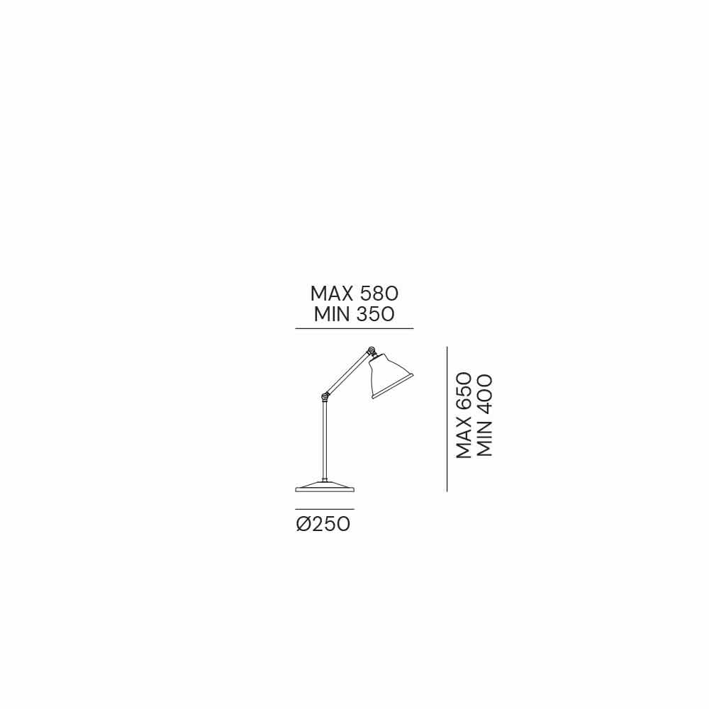 Kjo llambë tryeze e brendshme është prodhuar tërësisht në Itali dhe hekur dhe bronz . Dizajni i pastër karakterizohet nga një material i fortë dhe elemente të rafinuar estetikë. Veçori është dhënë nga sistemi i përbashkët që lejon dhe lehtëson lëvizjen nga lart poshtë dhe nga e majta në të djathtë. Ideale për adhuruesit e stilit të cilësisë së mirë industriale , është në gjendje të krijojë një pamje avangarde dhe minimale.