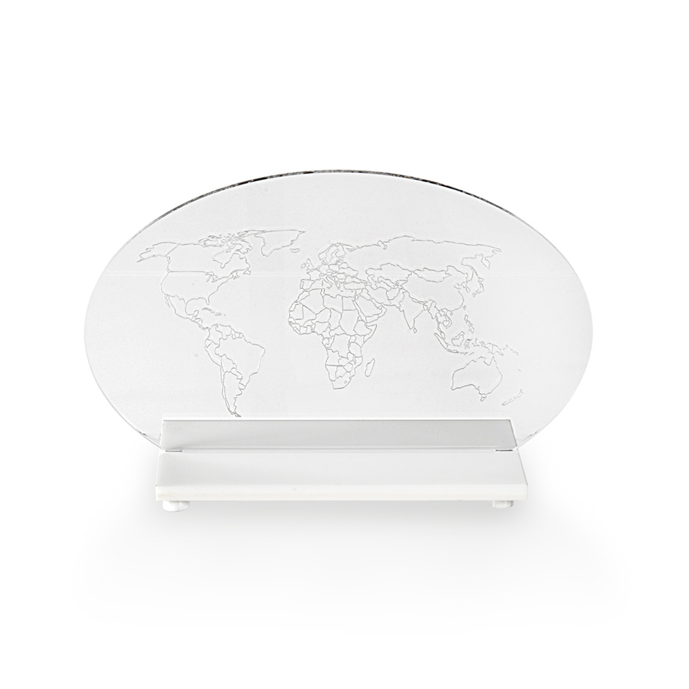 E farkëtuar nga pleksiglas 100% polimer i virgjër PMMA , kjo llambë nuk është vetëm një shembull i shkëlqimit, por edhe një dëshmi e cilësisë. Kristali akrilik, kur ndizet, nuk bën gjë tjetër veçse përmirëson formën magjepsëse të globit, duke krijuar një atmosferë të ngrohtë dhe mikpritëse me një dritë natyrale prej 4000°K , e cila do t'ju bëjë të ndiheni sikur e keni botën në majë të gishtave.