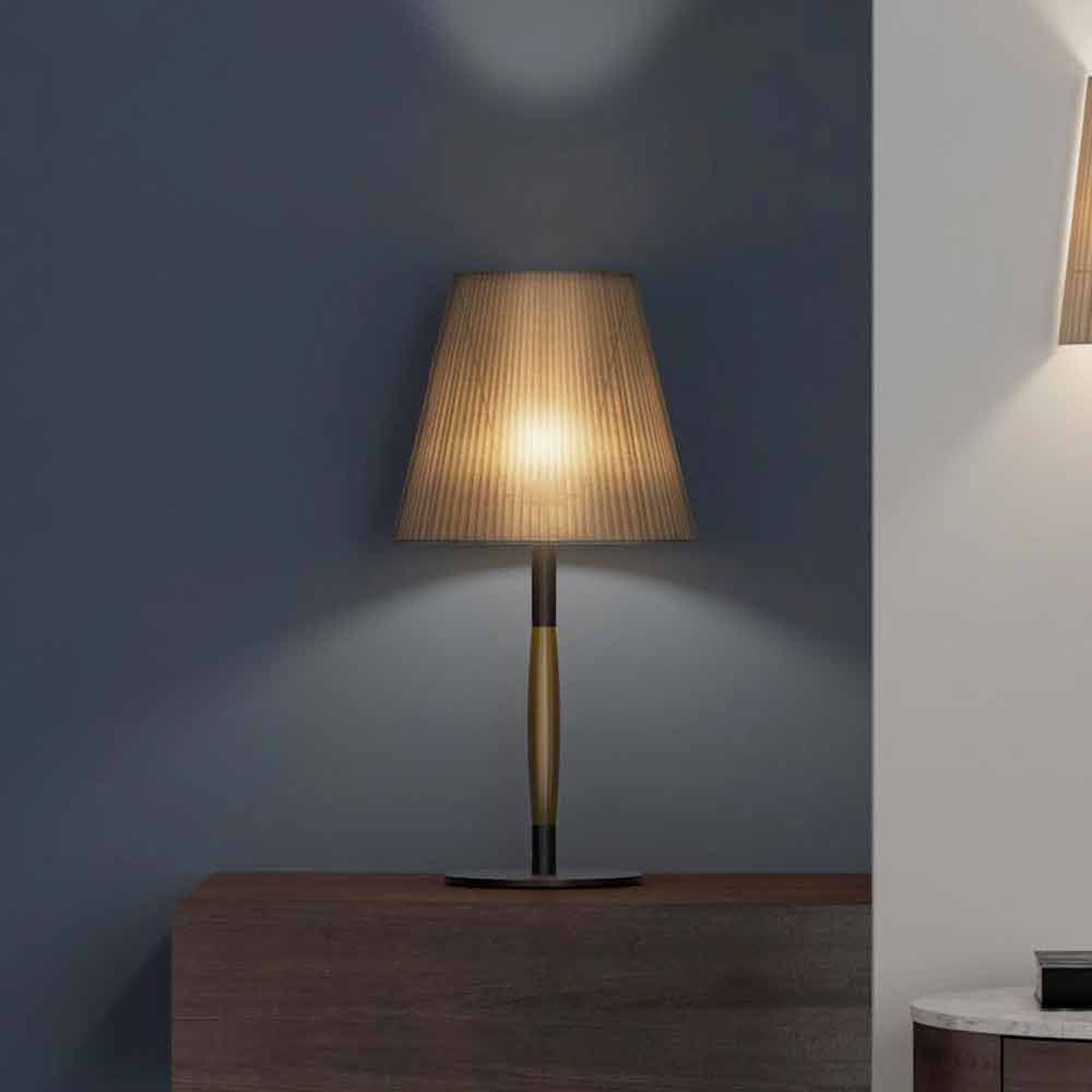 Llambë tavoline prej metali dhe druri me abazhurë moderne organza Prodhuar në Itali.