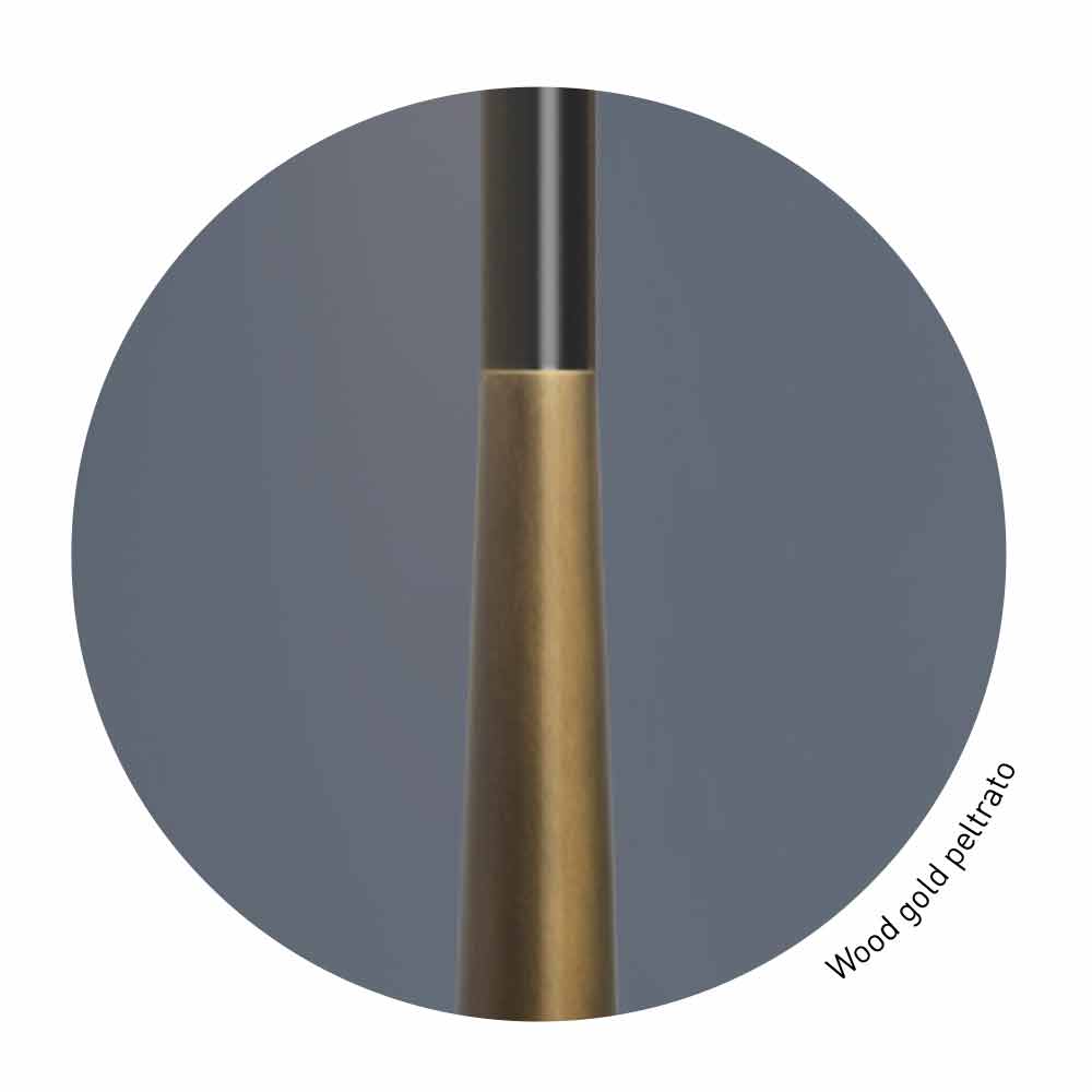 Kjo llambë tavoline moderne dhe elegante është prodhuar tërësisht në Itali dhe ka një strukturë prejmetali të zi dhe druri të pasuruar nga një abazhurë e mrekullueshme prej ari prej organze me shkëlqim . Ajo që karakterizon dizajnin e kësaj pjese të mobiljeve është thjeshtësia dhe stili i saj thelbësor i cili së bashku me përsosjen e përfundimeve të zgjedhura për strukturën dhe organzën i japin jetë një pjese unike të mobiljeve të aftë për të ndriçuar në mënyrë homogjene, duke krijuar intime dhe atmosfera elegante.