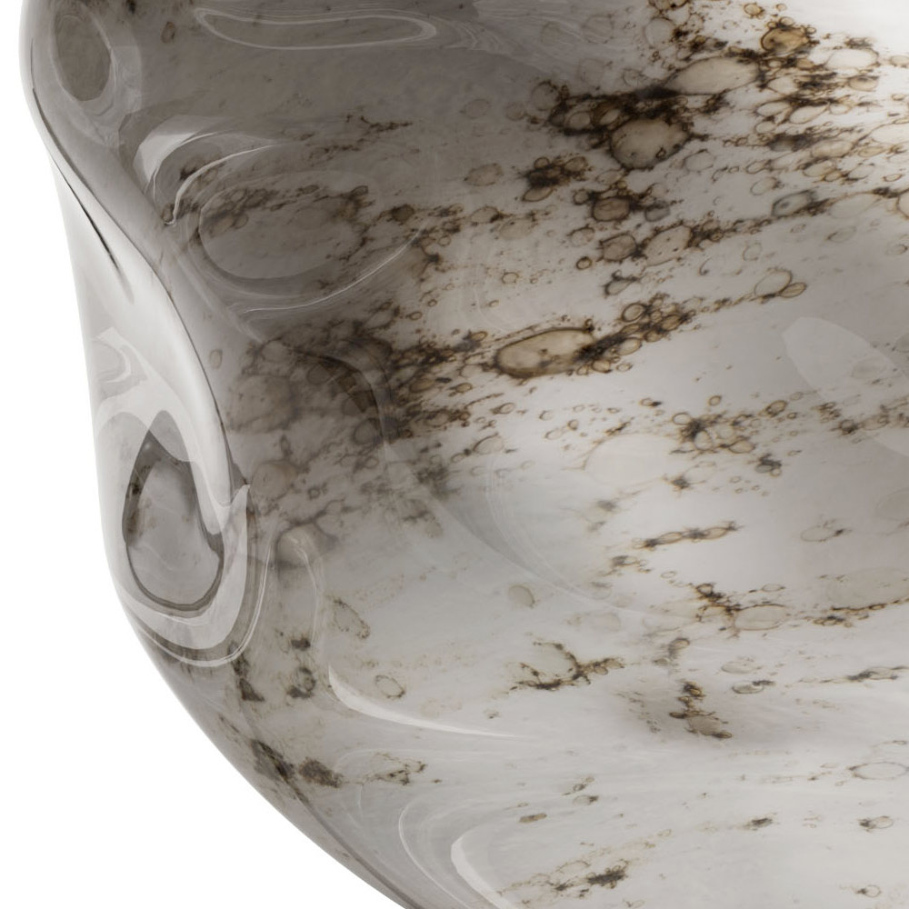 Llambë tavoline e punuar me strukturë bronzi të errët dhe drita LED të mbuluara nga xhami guri tërësisht Prodhuar në Itali. Ky produkt është mishërimi i përsosur i stilit mesdhetar: i ngrohtë, natyral dhe material. Çdo sferë qelqi Murano u krijua me dorë nga mjeshtëria e mjeshtërve të xhamit për të sjellë në mendje kujtimin e bukurisë së ashpër të gurit. Xhami, i pasuruar me pluhur metalik, formohet çdo herë me mjeshtëri, në mënyrë që të krijojë pjesë unike dhe të papranueshme dhe kjo është vlera e vërtetë e këtij elementi. Struktura prej bronzi e errët jep atë prekje fshatare që e bën atë të përsosur për çdo ambient duke dhënë një pamje moderne dhe të përjetshme.