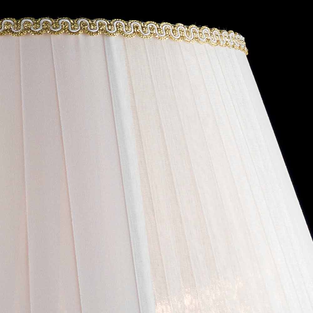Llambë dizenjuese me xham dhe kristal qelibar me fije ari. Abazhur organza dhe pongè.