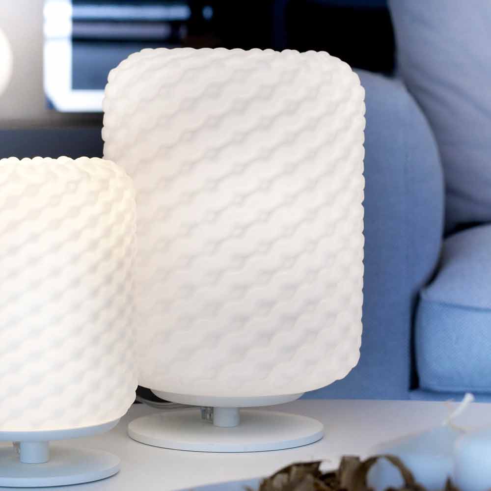 Mbledhja e pasur e llambave të qelqit të çelura me një prodhim të specializuar për lehtësimin e huallit që zbukuron vetë gotën. Hija e qelqit mund të jetë cilindrike në dy madhësi dhe gjithashtu në atë sferike. Për më tepër, është në dispozicion në tre ngjyra saten: të bardhë, qelibar dhe të tymosur.