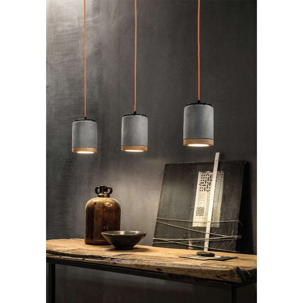 Kjo llambë varëse karakterizohet nga minimalizmi nordik i linjave me vëllime dhe forma plastike të rëndësishme, prej druri të ngurtë lisi dhe llak qeramike hiri që ndërthur formën dhe funksionin dhe me kabllon e butë prekëse të një ngjyre portokalli të ndezur që është ideale për ambjente arredimi. me një dizajn më bashkëkohor.